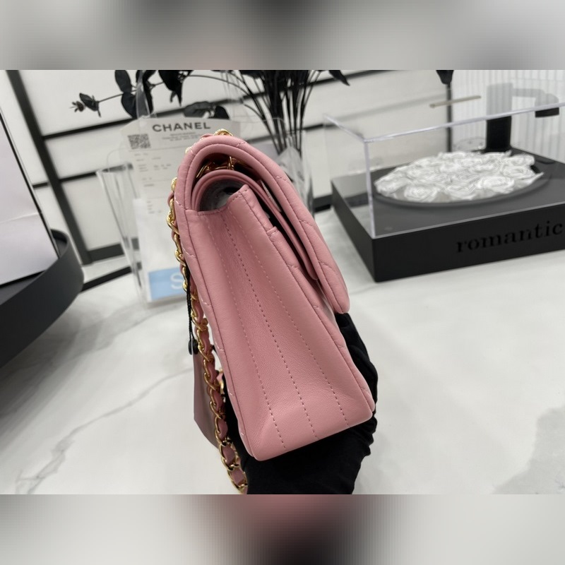 Chanel CF2.55 V-라인 램스킨 체인백 올스틸 메탈 CF25cm 램스킨 V-라인 매우 여성스럽고 우아한 코코 샤넬의 섹시한 매력이 돋보이는 클래식한 디자인으로 모든 옷에 잘 어울리고 역대 판매 챔피언으로 알려진 요정들의 옷장에 빠질 수 없는 아이템 이탈리아 가이아라의 오리지널 공장 등급 램스킨 섬세하고 유연성이 뛰어나며 코팅 없이 순수한 천연 물 염색 가죽 표면의 모공이 선명하게 드러남 크기: 25.5cm