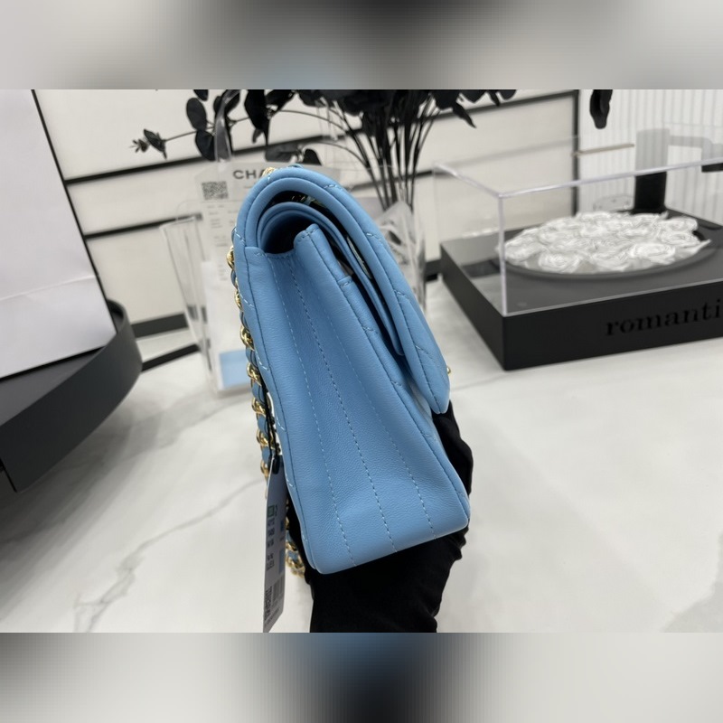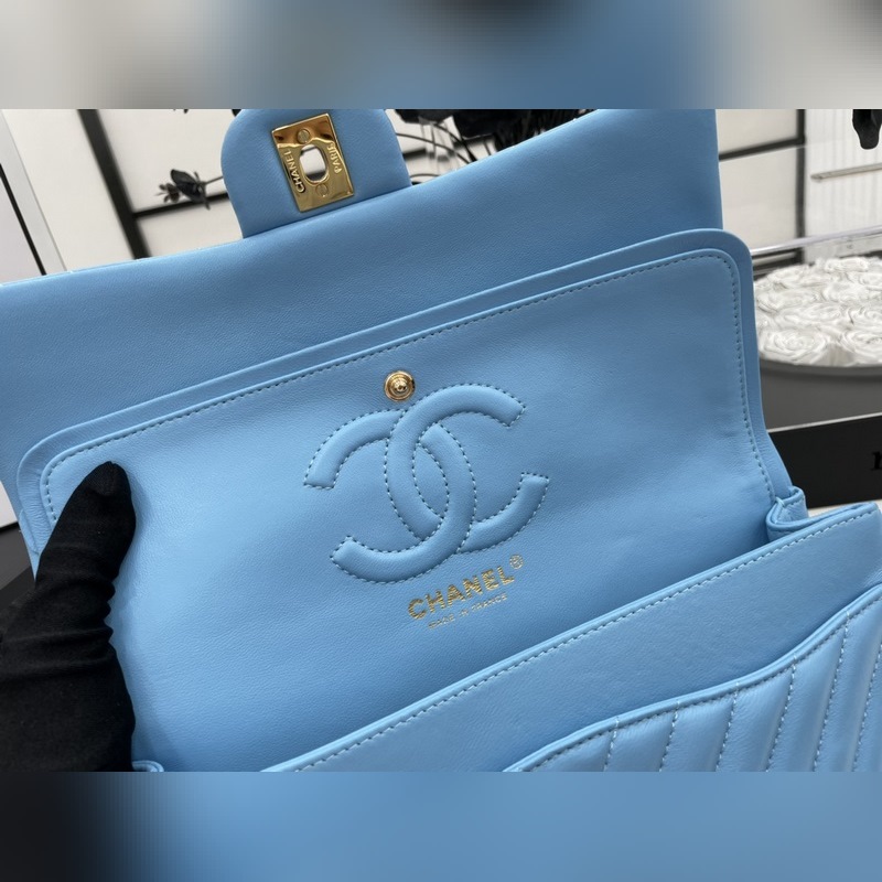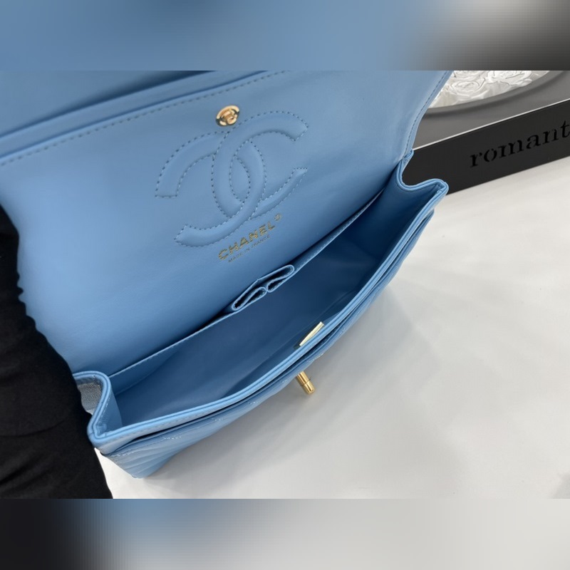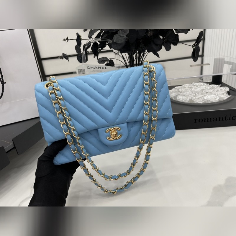 Chanel CF2.55 V-라인 램스킨 체인백 올스틸 메탈 CF25cm 램스킨 V-라인 매우 여성스럽고 우아한 코코 샤넬의 섹시한 매력이 돋보이는 클래식한 디자인으로 모든 옷에 잘 어울리고 역대 판매 챔피언으로 알려진 요정들의 옷장에 빠질 수 없는 아이템 이탈리아 가이아라의 오리지널 공장 등급 램스킨 섬세하고 유연성이 뛰어나며 코팅 없이 순수한 천연 물 염색 가죽 표면의 모공이 선명하게 드러남 크기: 25.5cm