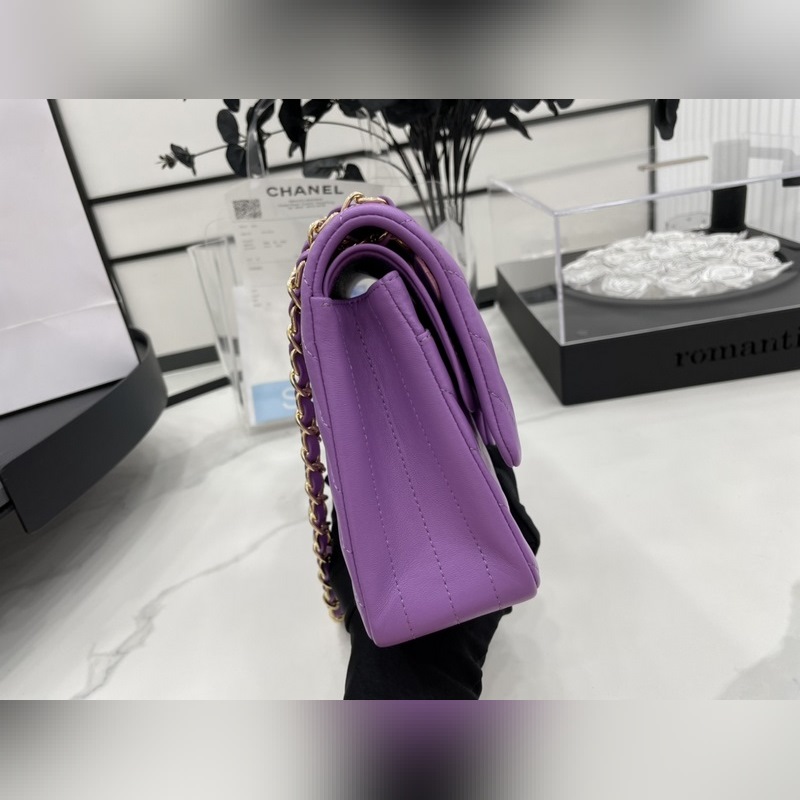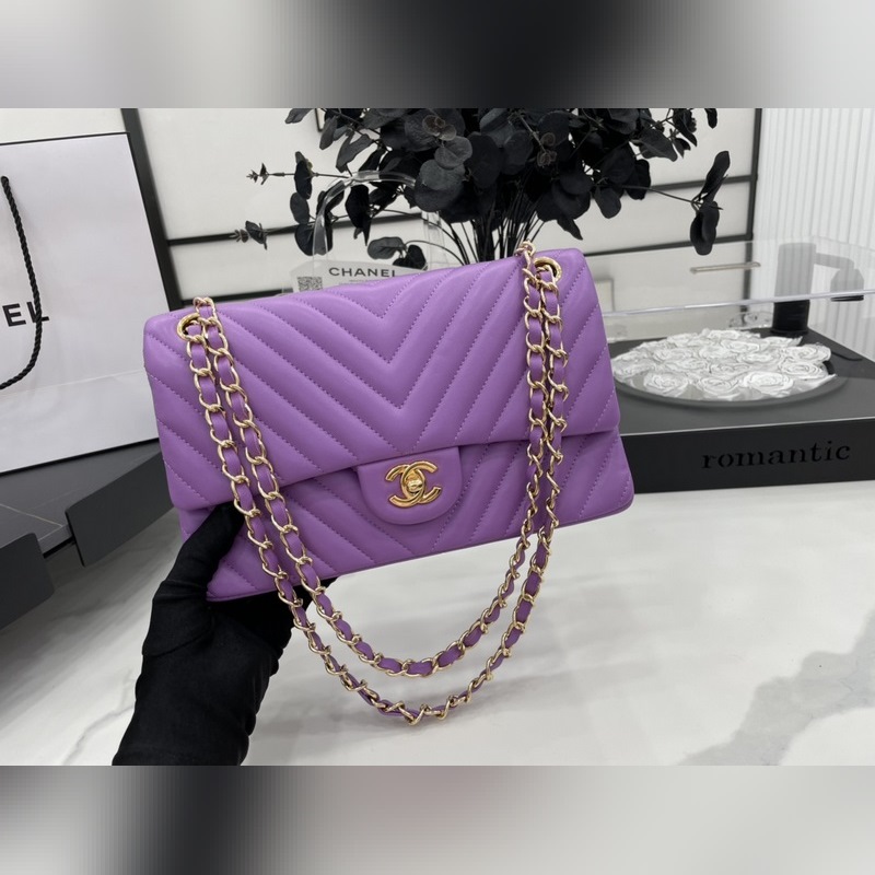 Chanel CF2.55 V-라인 램스킨 체인백 올스틸 메탈 CF25cm 램스킨 V-라인 매우 여성스럽고 우아한 코코 샤넬의 섹시한 매력이 돋보이는 클래식한 디자인으로 모든 옷에 잘 어울리고 역대 판매 챔피언으로 알려진 요정들의 옷장에 빠질 수 없는 아이템 이탈리아 가이아라의 오리지널 공장 등급 램스킨 섬세하고 유연성이 뛰어나며 코팅 없이 순수한 천연 물 염색 가죽 표면의 모공이 선명하게 드러남 크기: 25.5cm