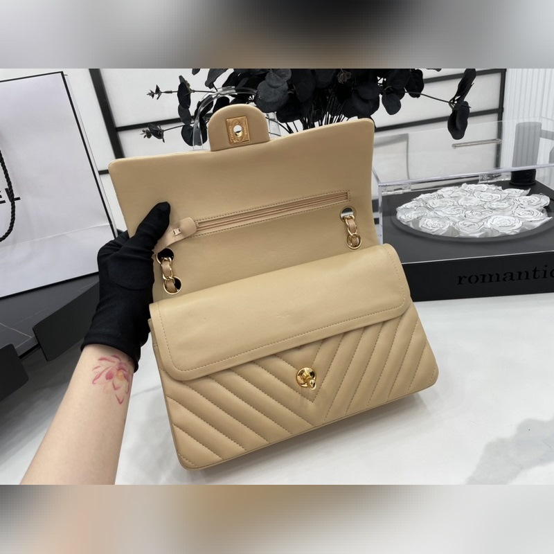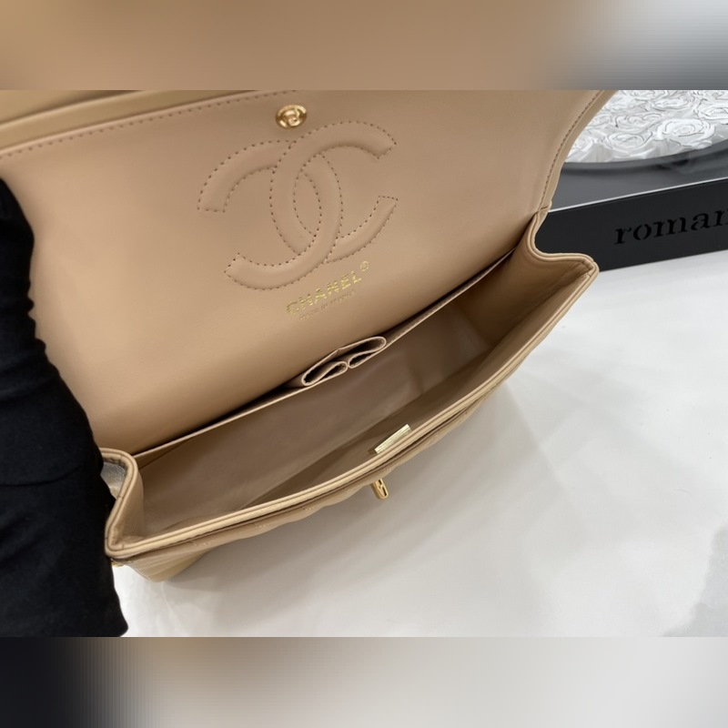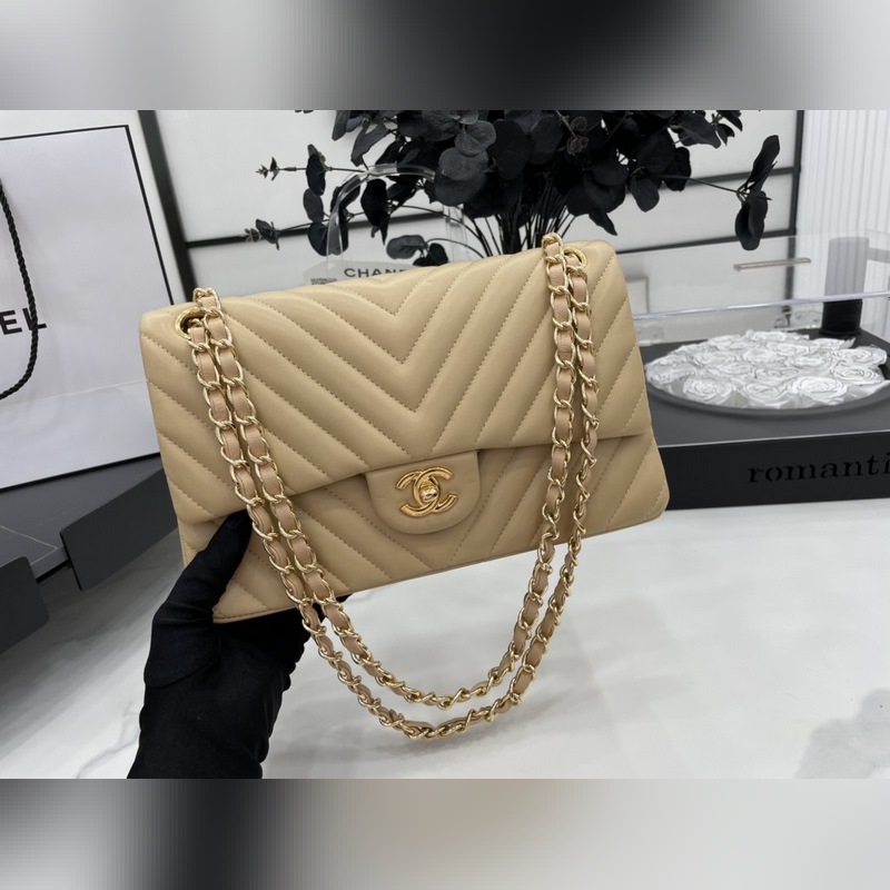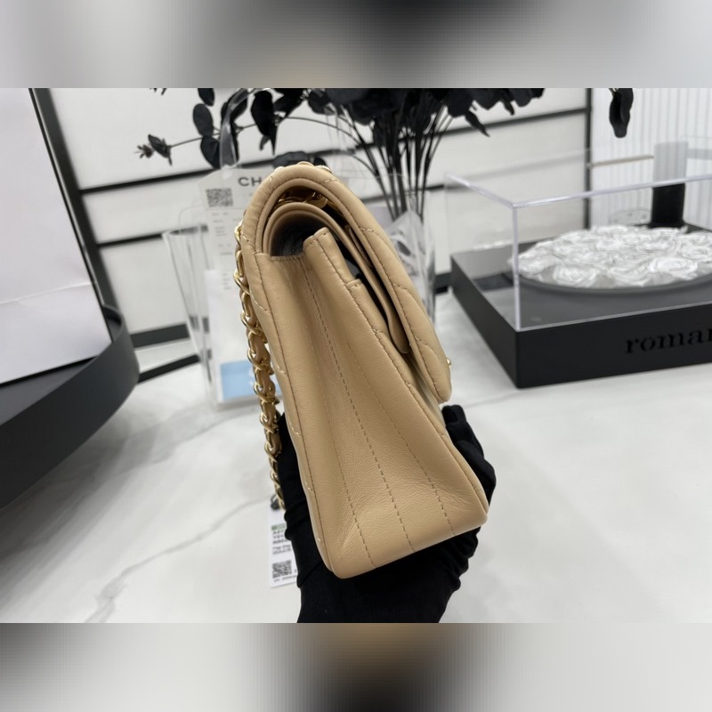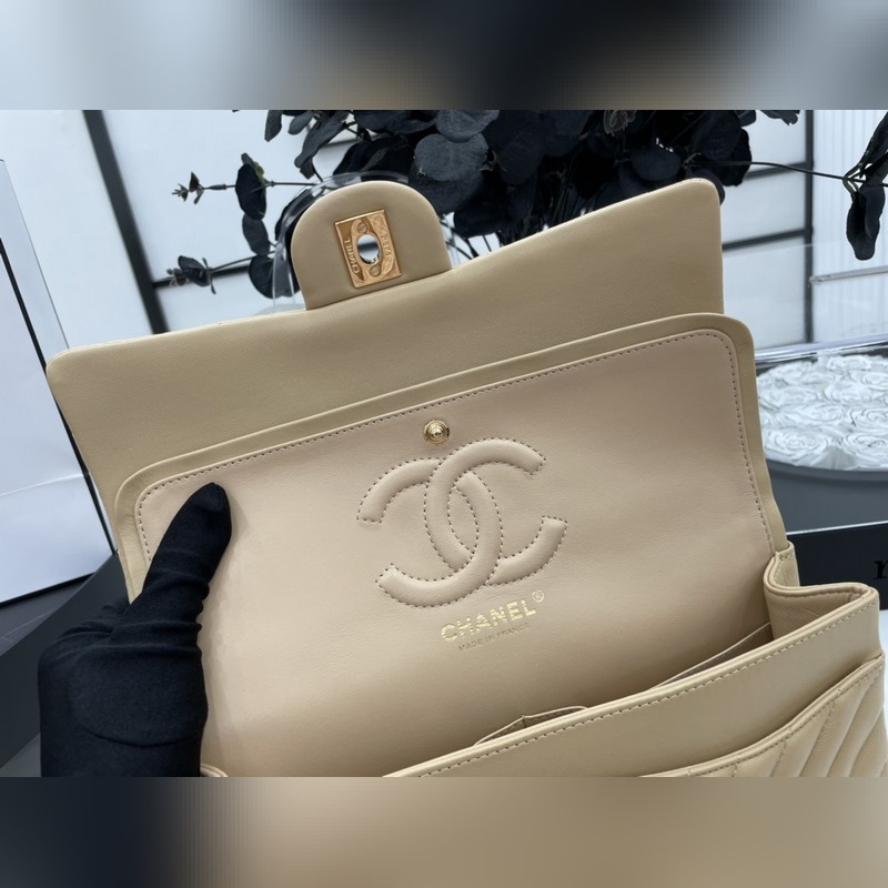 Chanel CF2.55 V-라인 램스킨 체인백 올스틸 메탈 CF25cm 램스킨 V-라인 매우 여성스럽고 우아한 코코 샤넬의 섹시한 매력이 돋보이는 클래식한 디자인으로 모든 옷에 잘 어울리고 역대 판매 챔피언으로 알려진 요정들의 옷장에 빠질 수 없는 아이템 이탈리아 가이아라의 오리지널 공장 등급 램스킨 섬세하고 유연성이 뛰어나며 코팅 없이 순수한 천연 물 염색 가죽 표면의 모공이 선명하게 드러남 크기: 25.5cm