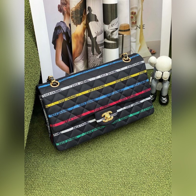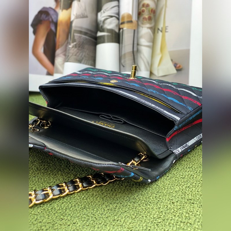 CHANEL 22p 스트라이프 원단 체인백 클래식 2.55는 언제나 우아하고 시대를 초월합니다. 이 제품은 양가죽보다 내구성과 내마모성이 더 뛰어난 수입 데님 원단으로 만들어졌습니다. 더블 C 로고가 있는 컬러풀한 그래피티 스트라이프가 단조롭고 지루한 느낌을 덜어주어 여름철에 더 잘 어울립니다. 안감은 클래식한 양가죽으로 되어 있고 골드 체인과 매치되어 있어 클래식하면서도 세련된 디자인으로 활용도가 더 높습니다.