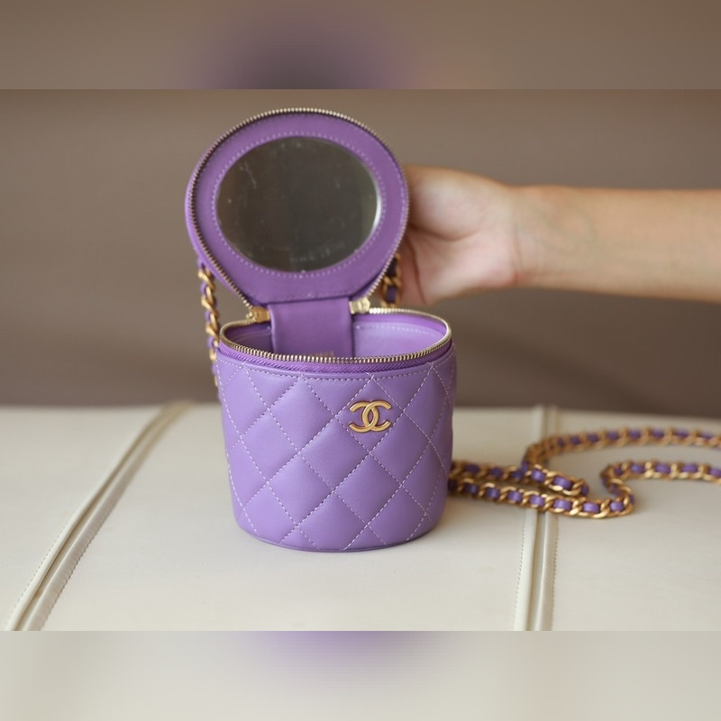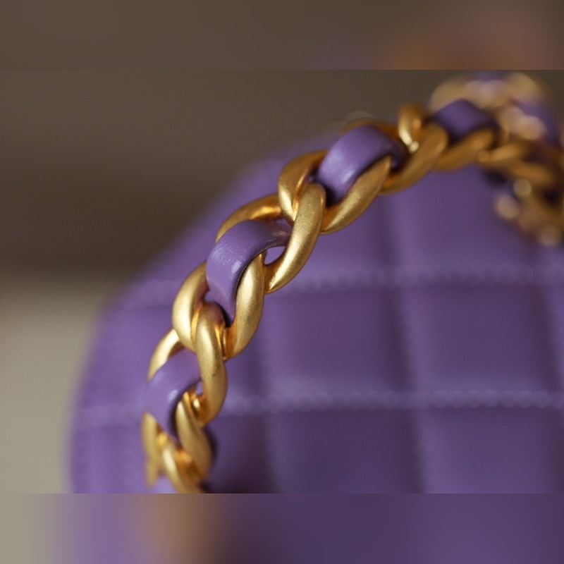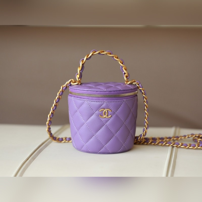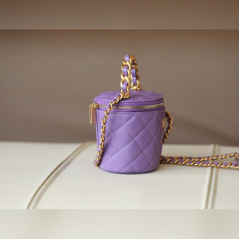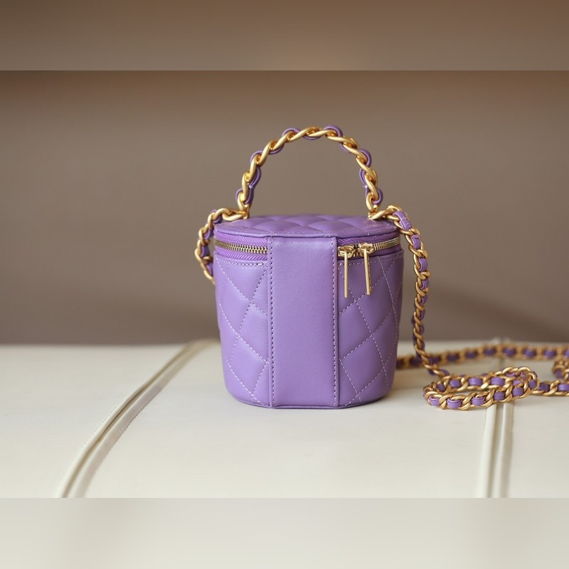 샤넬 버킷백 판타지 걸 퍼플 샤넬 메티에 다르 올해의 초가을 모델 헤비메탈 손목 하드웨어는 블랙 가죽 스트랩 디자인과 짝을 이룹니다. 온화하고 세련되다 버킷백의 왕 크기 10.5x16.5x10.5cm