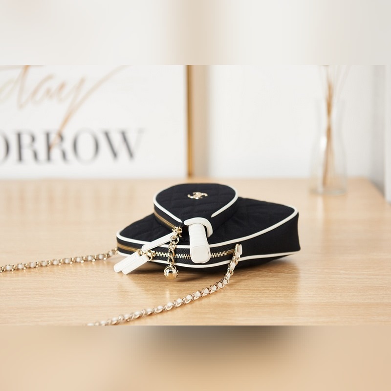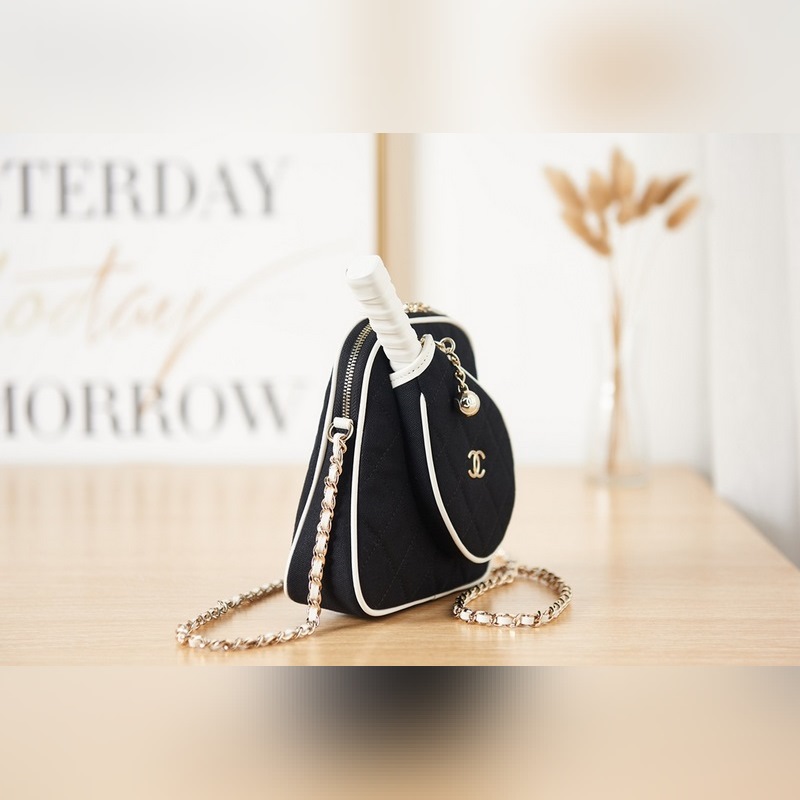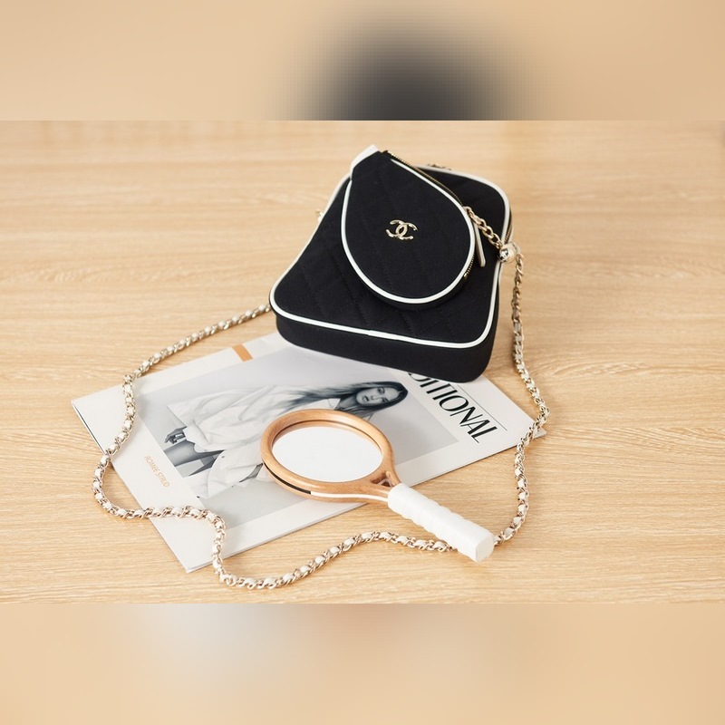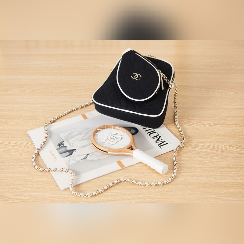 샤넬 테니스 라켓 가방 모델 번호 AS3150 가죽과 천으로 만든 테니스 라켓은 거울로 사용할 수 있습니다. 사이즈 16.5-17-5cm