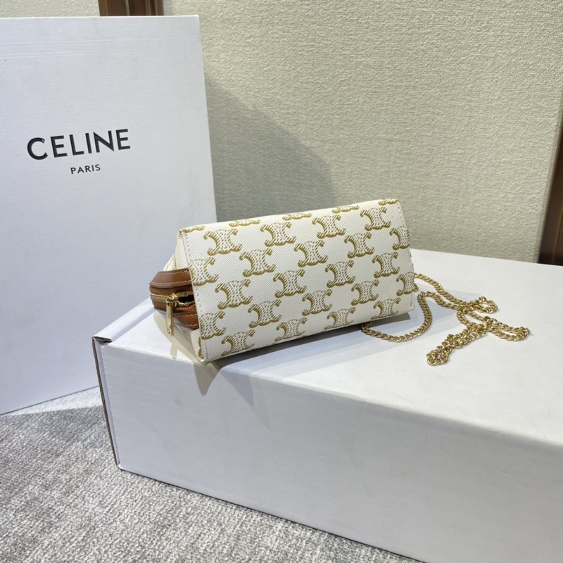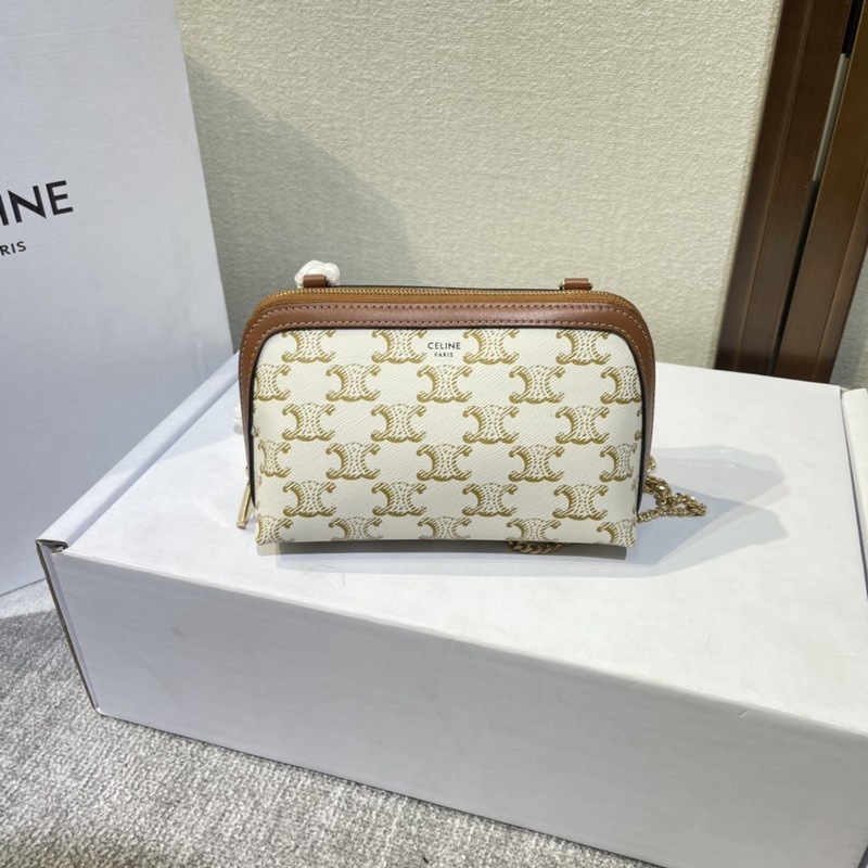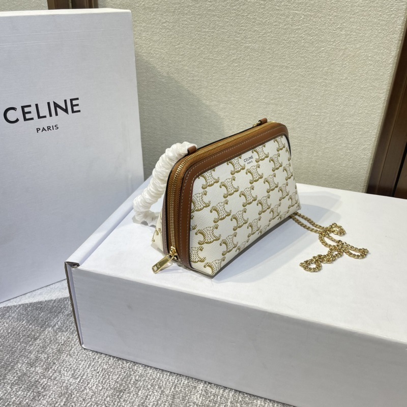 셀린 TRIOMPHE 혼합 양가죽 체인백 모델 번호: 101382 극세금 자수 하나의 주요 구획/체인 잠금 폐쇄 소재/갈색 크기: 16-11cm