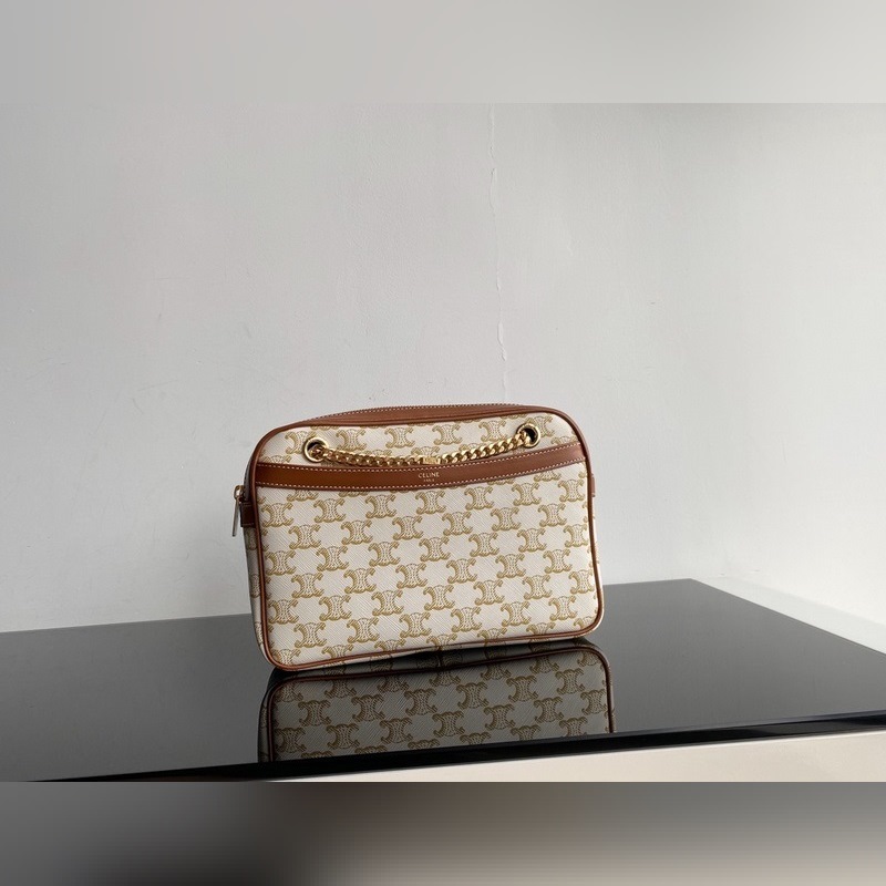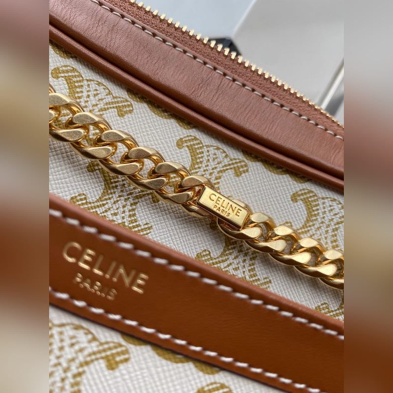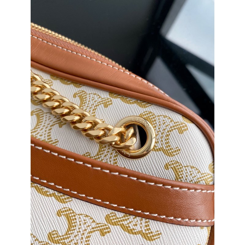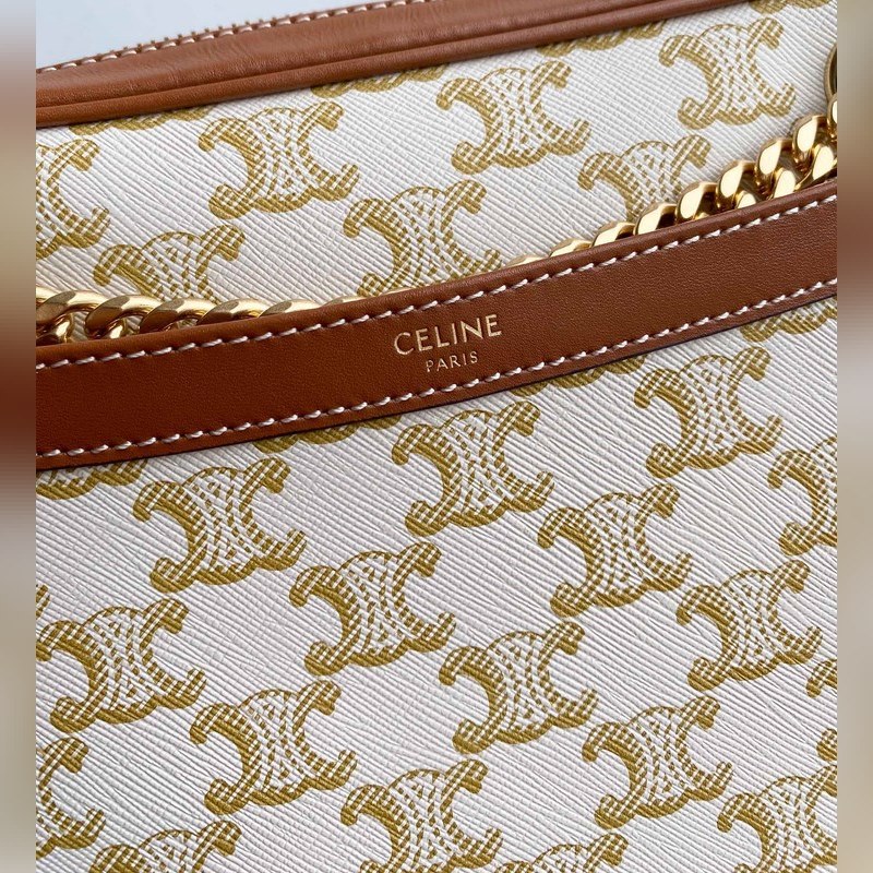 셀린느 TRIOMPHE CANVAS 로고 프린트 PATAPANS 핸드백 체인백 TRIOMPHE CANVAS 로고 프린트 소가죽 트림 패브릭 안감 금색 금속 부품 어깨에 메는 스타일 지퍼 여밈 내부 지퍼 포켓 1개 외부 플랫 포켓 1개 크기: 26 x 19 x 5cm