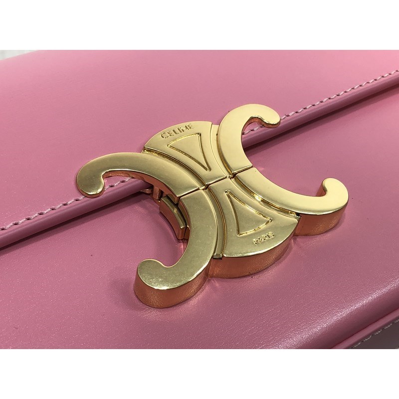CELINE 작은 반짝이는 소가죽 체인 백 소형 체인 언더암 백 No. 197993BF4.38NO 검은색 소가죽에 양가죽 안감 TRIOMPHE 실버 메탈 버클이 달린 숄더백 크기: 20.5 x 10.5 x 4cm