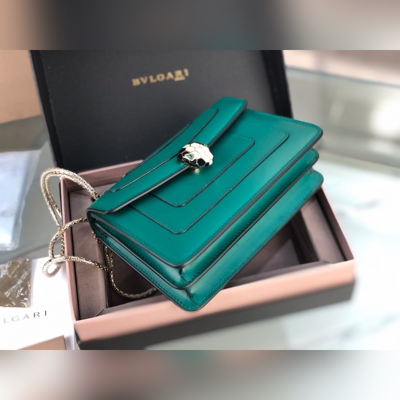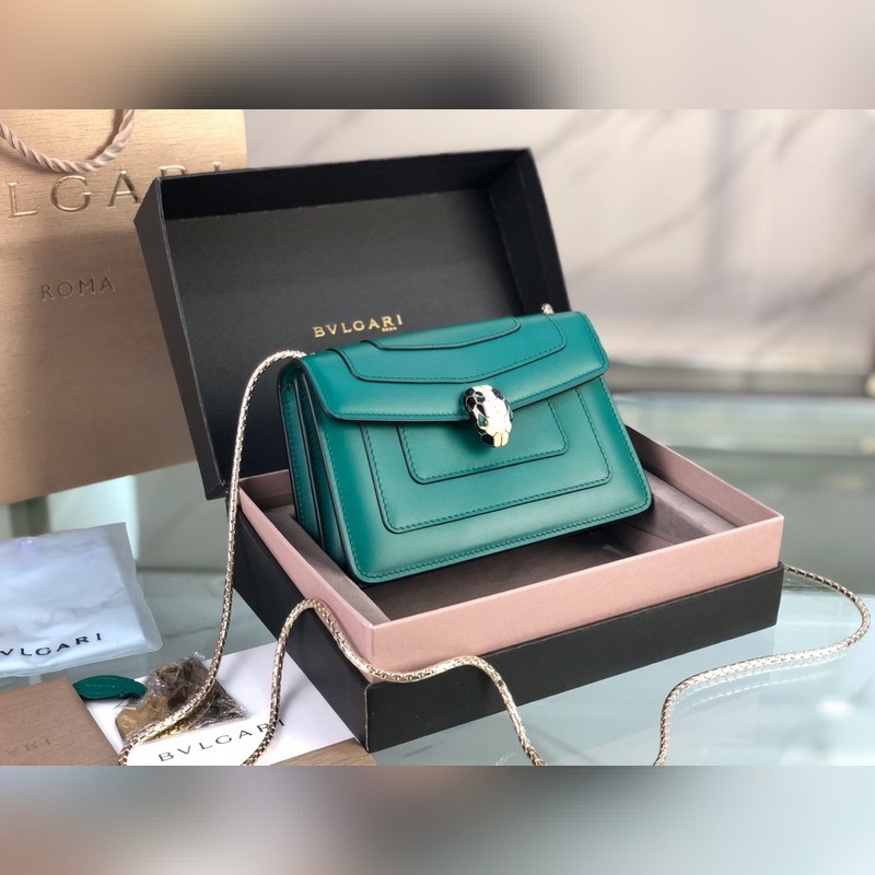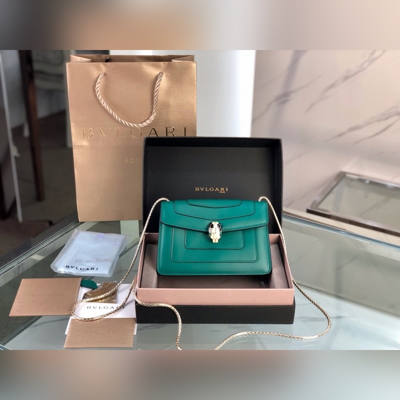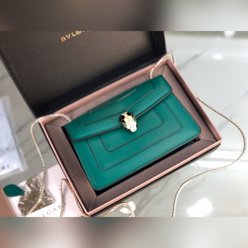 불가리 세르펜티 포에버 미니 더블 스네이크 헤드 백 모델: 288113 수입한 이탈리아 송아지 가죽 가벼운 금도금 황동 소재의 클래식한 뱀 머리 모양의 걸쇠 스타피시 산호 색상의 영리한 변형 새로운 시즌의 패션 트렌드를 선도합니다. 흑백 에나멜과 녹색 말라카이트의 감각적인 눈 뱀 머리 모양의 걸쇠가 매력적으로 매달려 있습니다. 구불구불한 금도금 황동 소재의 뱀 몸체 체인은 두 개의 수납 공간이 있으며 작은 화장 거울로 보완됩니다. 크기: 16.5*11*5cm