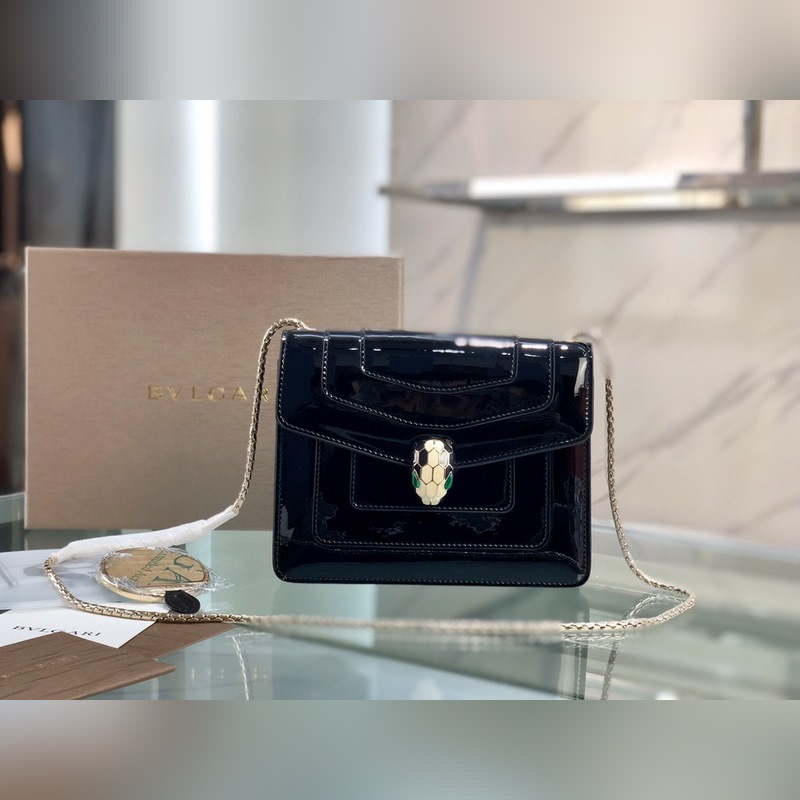 불가리 특허 가죽 시리즈 크로스 바디 파우치 체인 백 모델 35107 위조방지 레이저 라벨과 개별 번호가 있는 실크스크린. 외형은 작지만 필요한 휴대폰 립스틱 현금/카드 열쇠 등을 쉽게 넣을 수 있습니다. 크기: 20*16*5cm