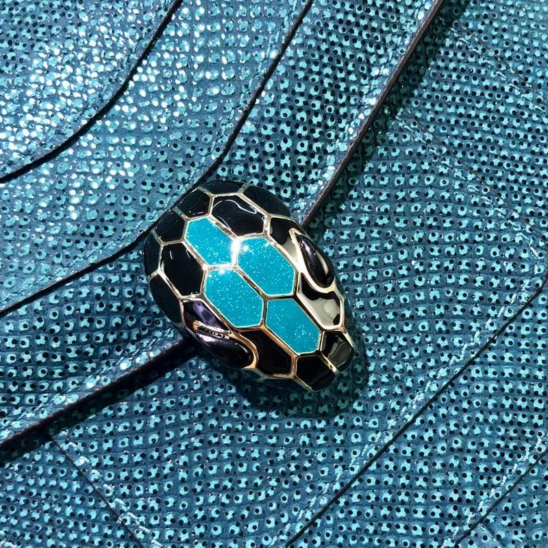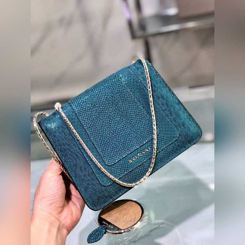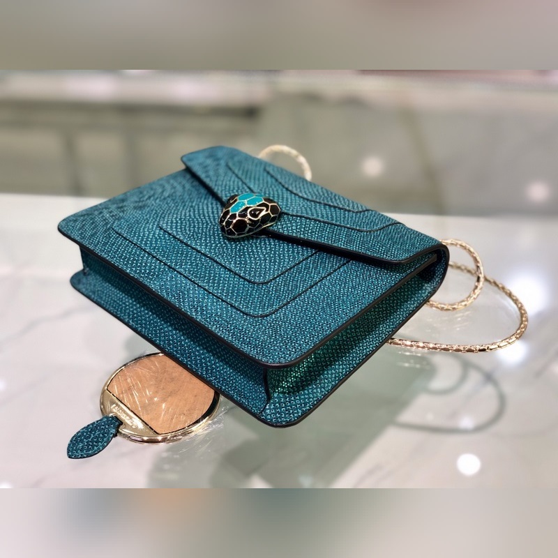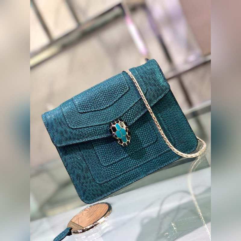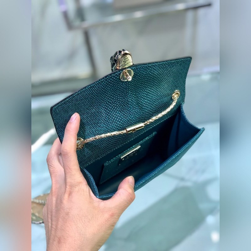 불가리 그린 소가죽 뱀 무늬 크로스바디 백 체인 백 모델: 35107 소 가죽과 뱀 무늬의 걸작. 뱀 머리와 프랑의 색깔은 가방 자체의 녹색과 동일합니다. 새로운 예술 작품이 탄생했습니다~~ 크기: 20:15:4cm