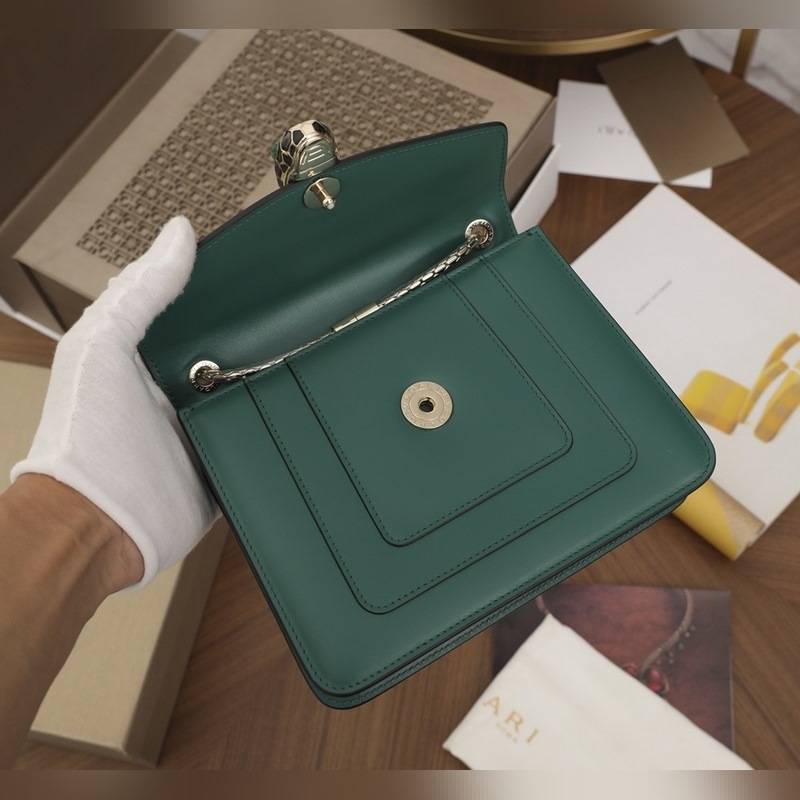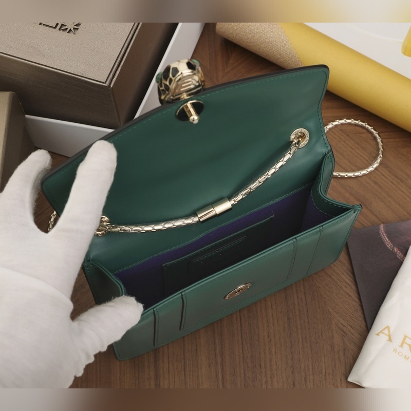 불가리 세르펜티 바게트 말라카이트 뱀 머리 에메랄드 스몰 백 체인 백 N