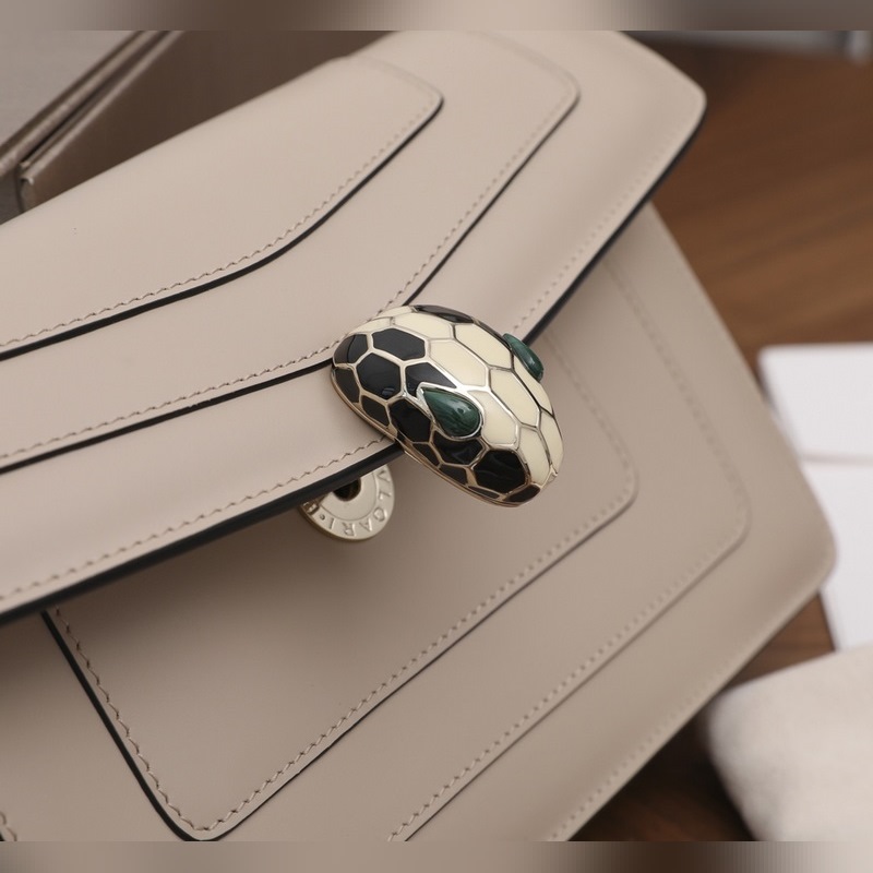 불가리 세르펜티 포에버 시리즈 말라카이트 뱀 머리 밀크티 컬러 핸드백 체