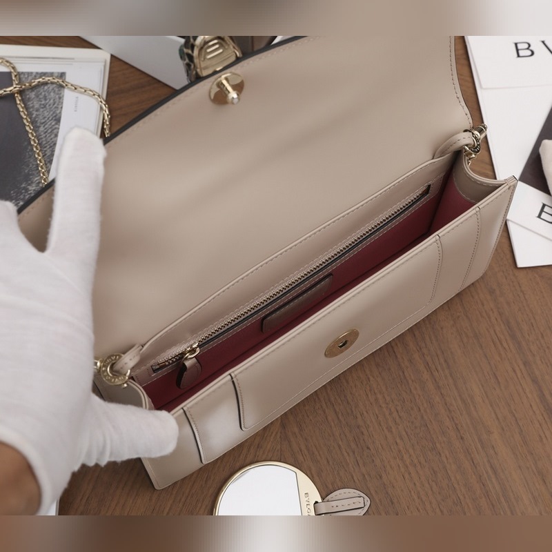 불가리 세르펜티 포에버 시리즈 말라카이트 뱀 머리 밀크티 컬러 핸드백 체인백 코드: 370449850 매우 실용적입니다! 어깨끈을 제거하면 클러치백이나 화장품 가방으로 사용할 수 있습니다. 가죽은 섬세하고 부드러우며 윤기가 납니다. 불가리는 보석뿐만 아니라 가방의 장인정신이 럭셔리하고 모든 디테일이 완벽하다는 것을 증명합니다. 크기: 25*12*3.5cm