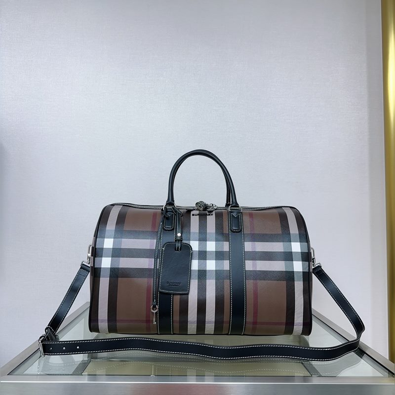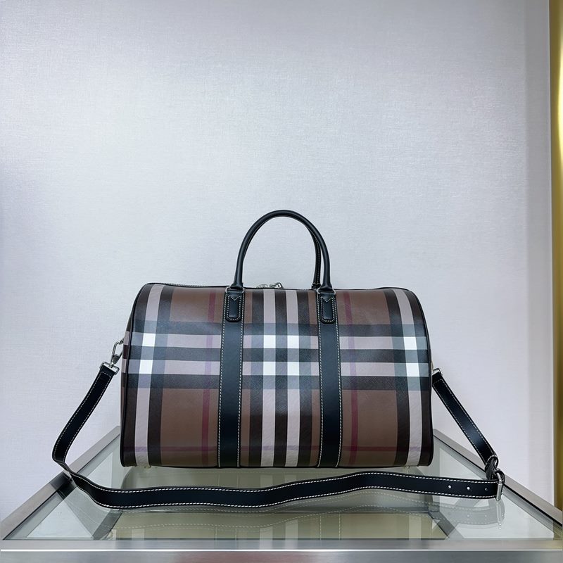 최고급 공간이 넓은 여행 가방 B 브랜드의 최신 버치 우드 브라운 체크 패턴에 여행 태그와 브랜드 로고 압인 디자인 브랜드 로고 지퍼 개폐식 분리형 어깨 스트랩 단일 어깨 스트랩으로 크로스백이나 핸들백으로 사용 가능 고급스러운 디자인! 사이즈 50 x 25 x 27cm 모델 번호 0921