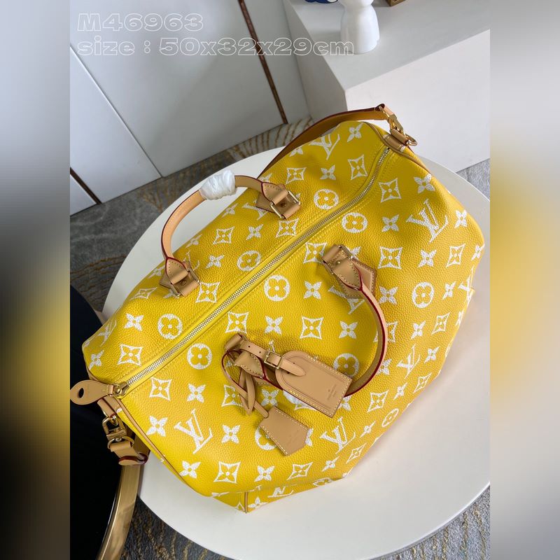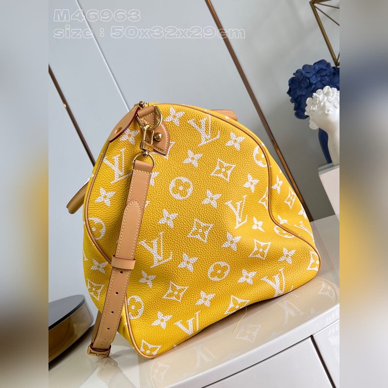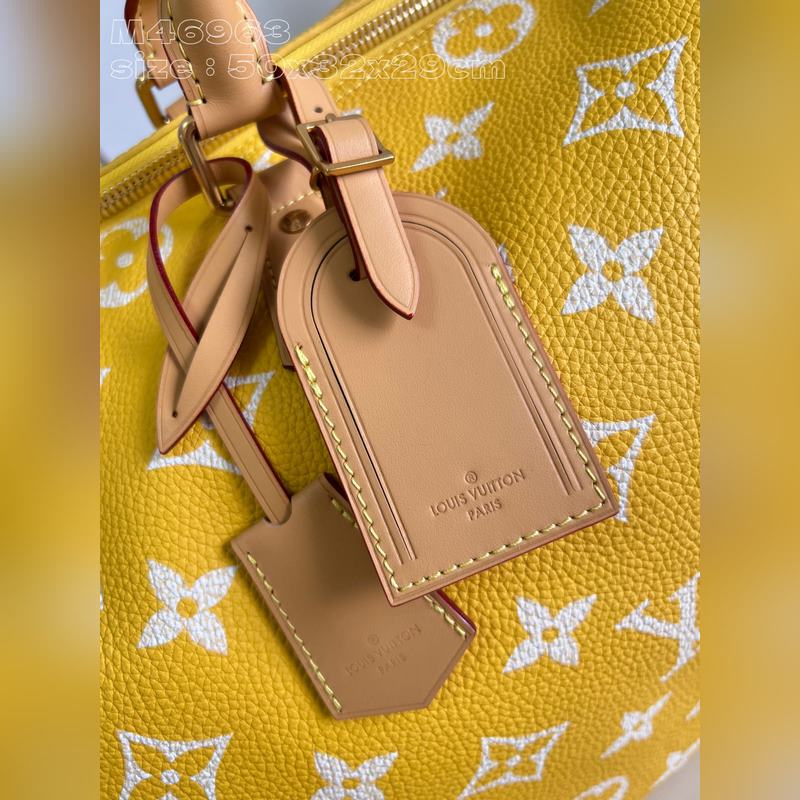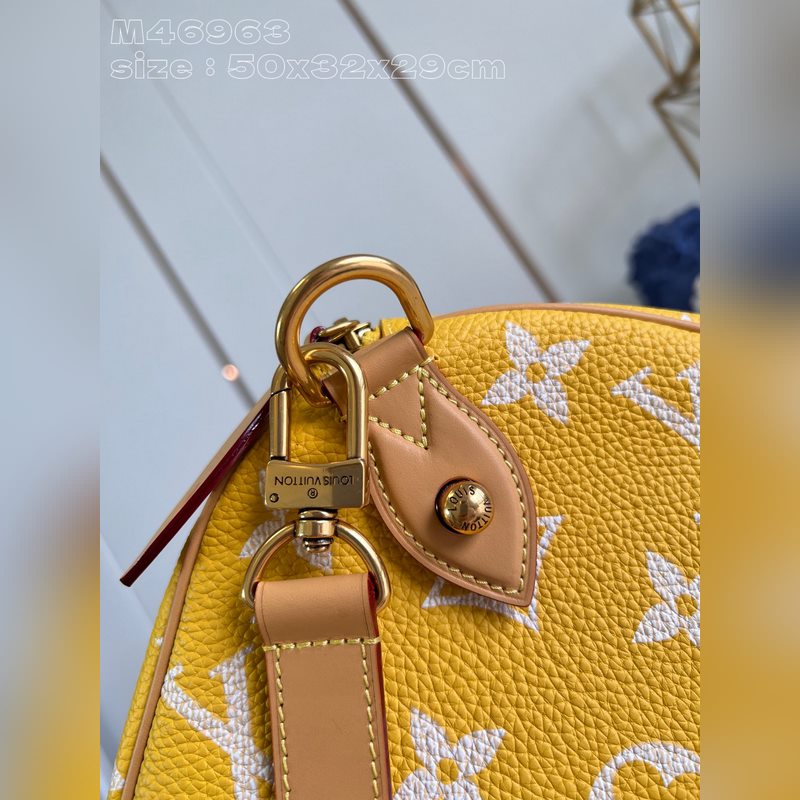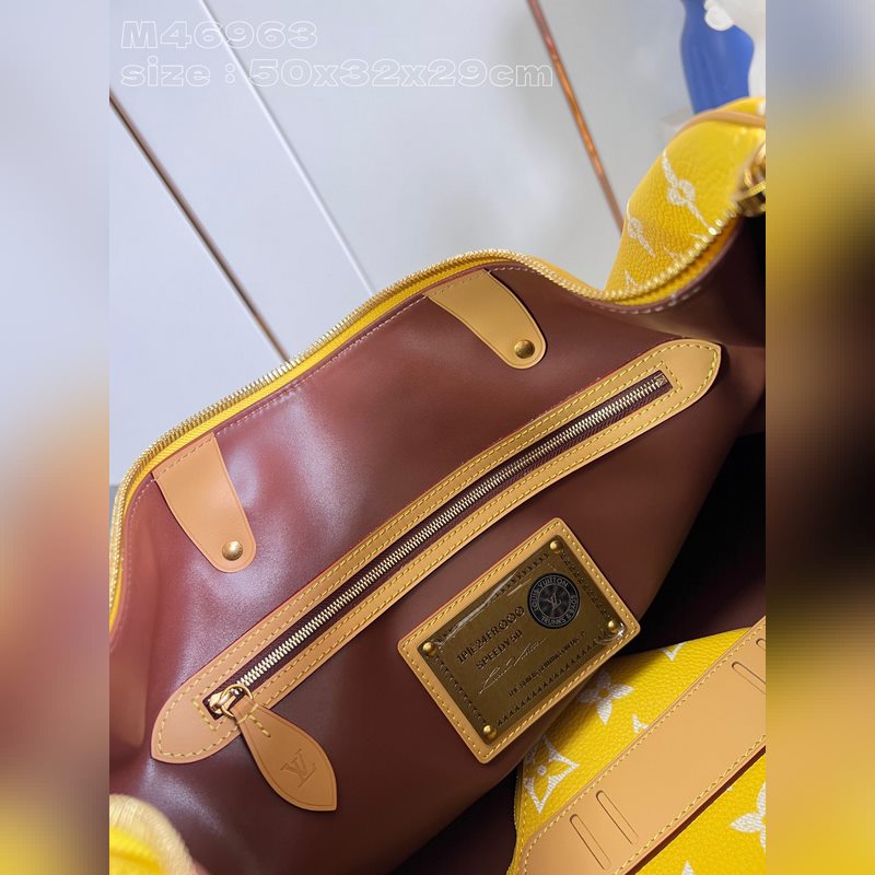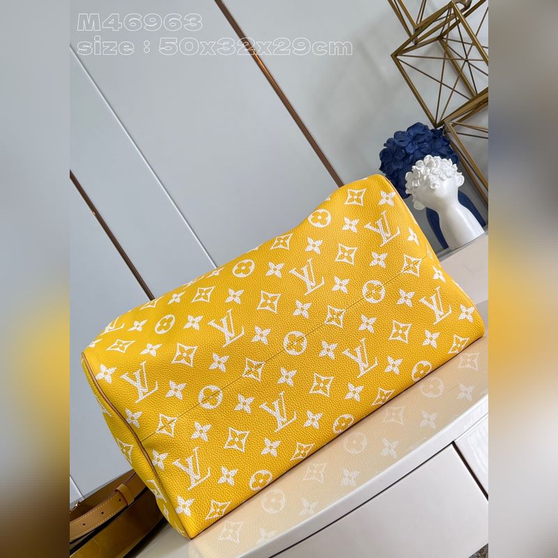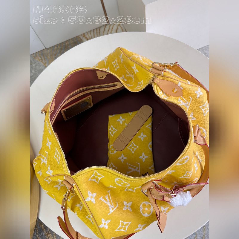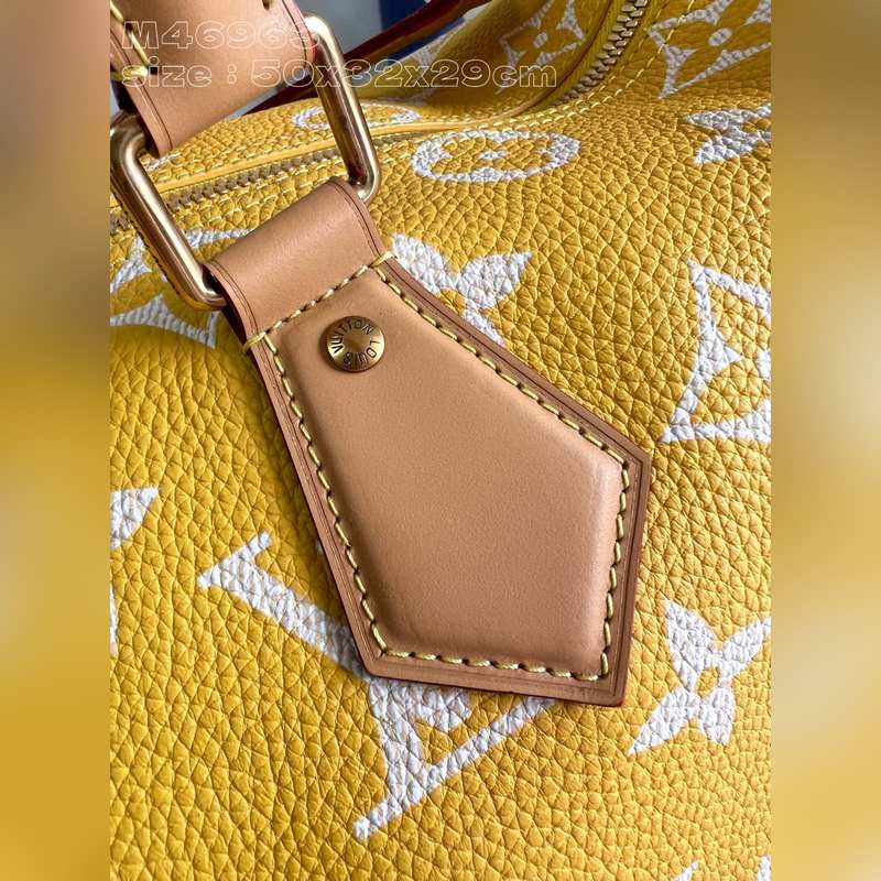 [독점 실제 사진 M46963 노란색] 크리에이티브 디렉터인 해럴 윌리엄스는 시디 반둘리에 50 모노그램 가죽 백을 눈길을 사로잡는 고급스럽고 부드러운 1차 송아지 가죽으로 재해석했습니다. 그리고 뛰어난 스크린 인쇄 공정을 통해 씨디에 모노그램 패턴을 장식하여 모노그램 캔버스의 능직 질감을 캔버스에 재현하여 거의 손으로 그린 듯한 흐릿한 효과를 만들어 냅니다. 50 x 32 x 29cm(길이 x 높이 x 너비) [친절한 알림: 이 품목은 포장 크기에 비해 너무 큽니다]