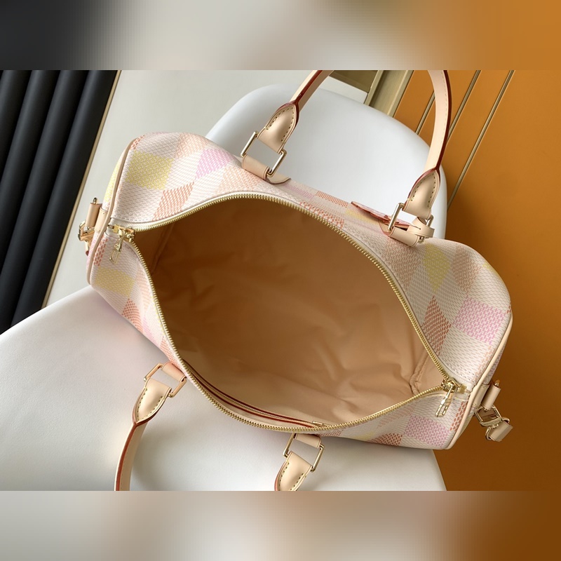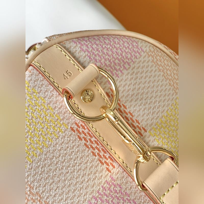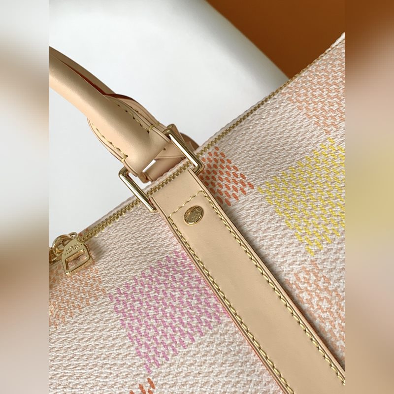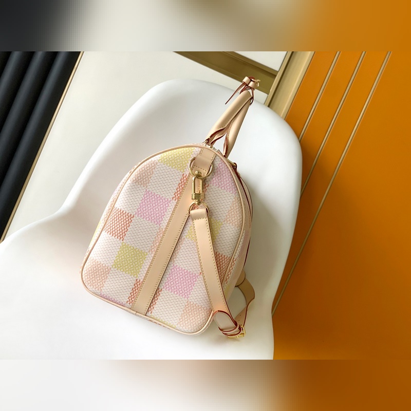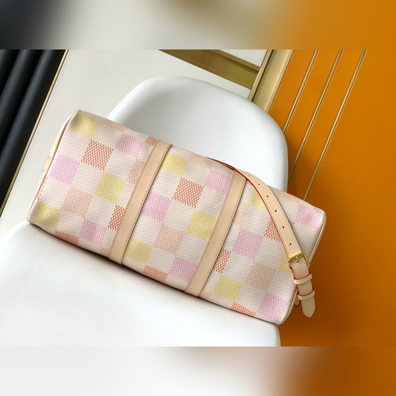 M40713 핑크 그리드 M4667 그린 그리드 최고급 오리지널 모델인 키플링 45는 다미에 캔버스에 매력적인 다미에 거대 패턴과 네 가지 파스텔 색상을 결합한 제품입니다. 이 가방은 항공기 기내 반입이 가능하며(항공사 및 사용 장비에 따라 다름) 상단 손잡이와 후드가 달린 소화기 형태의 보강재 탈착식 이름표가 특징입니다. 탈부착이 가능하고 길이 조절이 가능한 스트랩은 어깨에 착용할 수도 있습니다. *이 제품은 2025년 3월 1일(금)부터 3월 14일(목)까지 공식 웹사이트와 고객 서비스를 통해 선주문이 가능하며 3월 15일(금)에 판매가 시작됩니다. 단 이 기간 동안 선주문 수량이 달성되는 경우 선주문 접수를 중단합니다. 제품은 2025년 3월 15일(금)부터 배송됩니다. 제품 재고 상황에 따라 배송일이 달라질 수 있다는 점에 유의하시기 바랍니다. 45 × 27 × 20cm (가로 x 세로 x 모서리 지지대) 색상: 복숭아색 소재: 다미에 캔버스 트리밍: 가죽(가죽 종류: 소가죽) 안감: 직물 금속 부속품(색상: 금색) 기내 반입 가능 크기 (항공사와 사용하는 장비에 따라 조건이 다름) 더블 지퍼 개폐 지퍼가 달린 내부 주머니 자물쇠 분리 가능한 태그 태그 핸들: 더블
