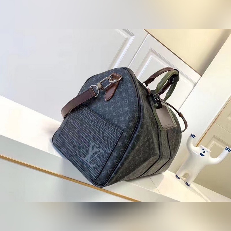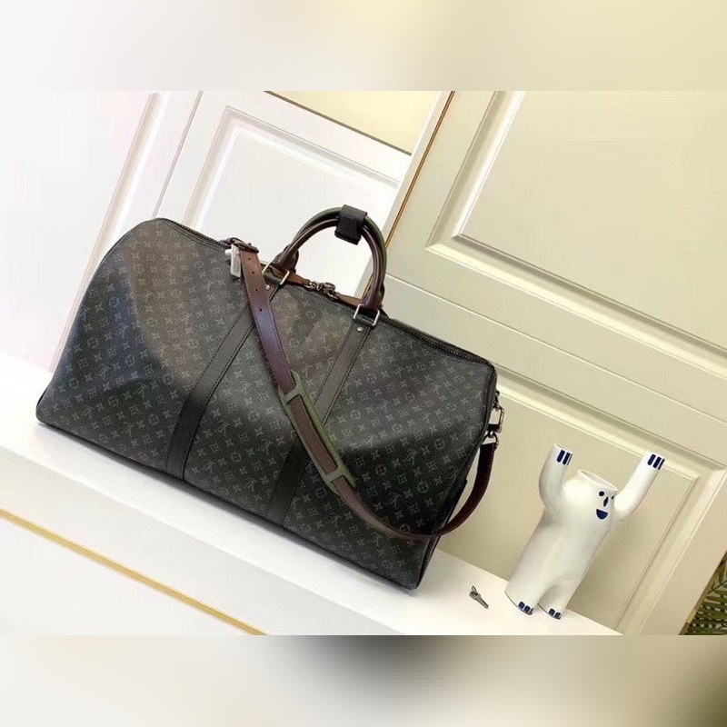최고급 오리지널 싱글 M55669 블랙 플로럴 패치워크 콜라주 테마의 KEEALL BANDOULIERE 여행 가방. 이 여행 가방은 트렌디한 시각을 도입하여 다재다능한 스타일을 연출합니다. 이 클래식한 부드러운 여행 가방에는 가죽 상단 손잡이와 측면에 두 개의 벨트가 장착되어 있습니다. 기내 반입 수하물 크기로 내부 공간이 넉넉합니다. 크기: 50.0 x 29.0 x 23.0cm 58669430