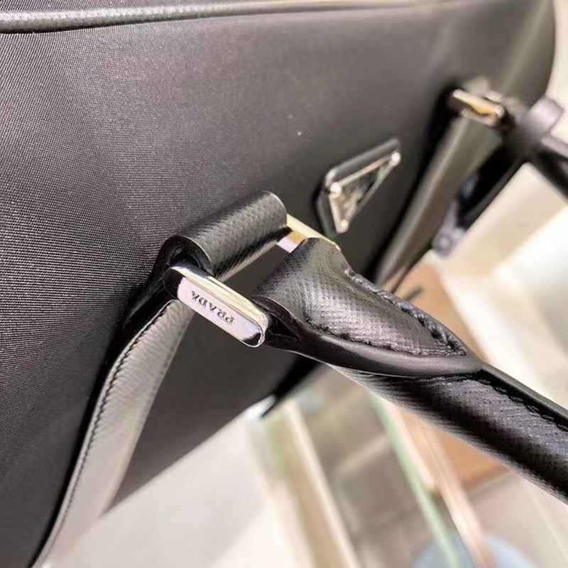 신제품 출시: 최신 나일론 여행 가방 2VC013 수입 낙하산 원단 + 사피아노 가죽 앞면에 삼각형 에나멜 로고 손잡이: 소가죽 나일론 소재는 가볍고 어깨끈은 필요에 따라 분리할 수 있으며 대용량으로 여행 시 필수품입니다. 비행기에서 가지고 다니기에 매우 편리합니다. 208 OEM 코드 크기: 55*33*27cm 검정