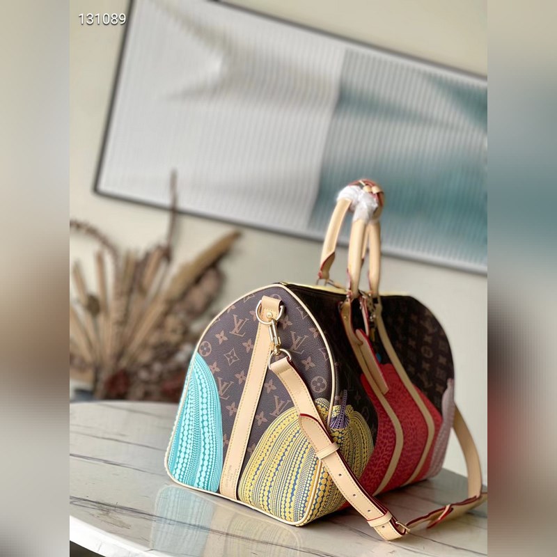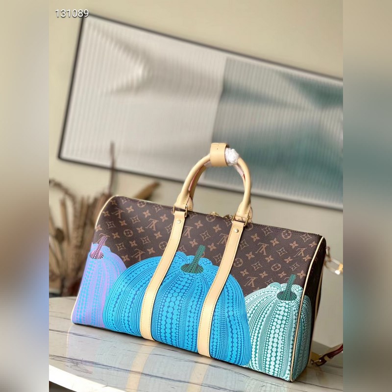 최고 품질의 정품 M46471 x YK KEEPALL 45 여행 가방. 쿠사마 야요이는 어렸을 때부터 따뜻함과 편안함의 상징인 호박을 그리는 것을 좋아했습니다. 사이키델릭 호박 패턴이 모노그램 이클립스 리버스 캔버스를 장식하고 있으며 이는 또 다른 시각적 명함이자 수집 가능한 선택입니다. 크기: 45*27*20cm