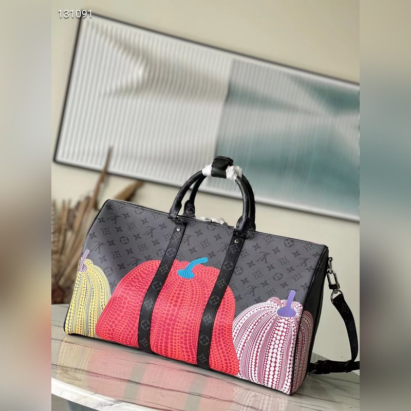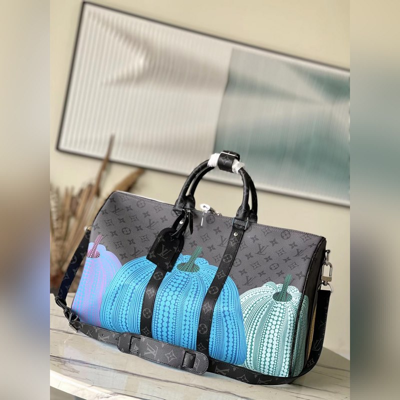 최고 품질의 정품 M46441 x YK KEEPALL 45 여행 가방. 쿠사마 야요이는 어렸을 때부터 따뜻함과 편안함의 상징인 호박을 그리는 것을 좋아했습니다. 사이키델릭 호박 패턴이 모노그램 이클립스 리버스 캔버스를 장식하고 있으며 이는 또 다른 시각적 명함이자 수집 가능한 선택입니다. 크기: 45*27*20cm