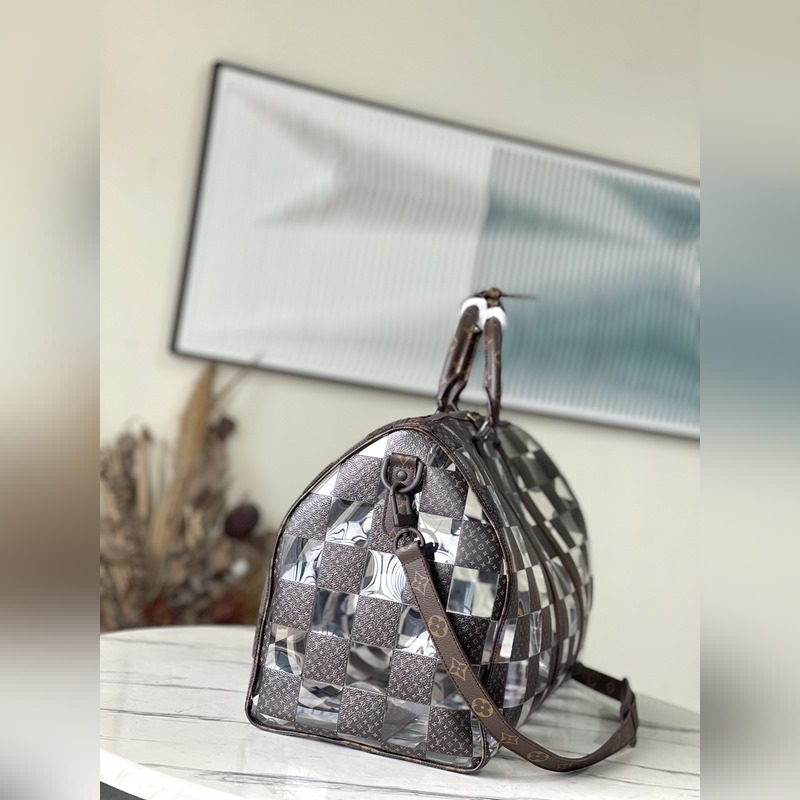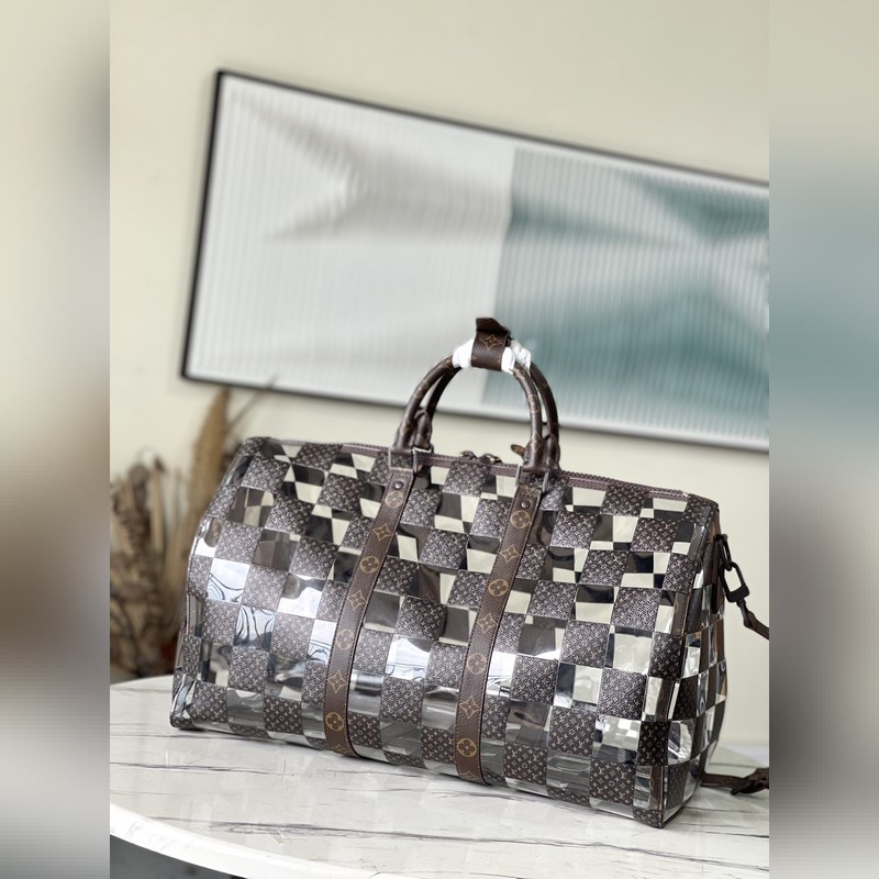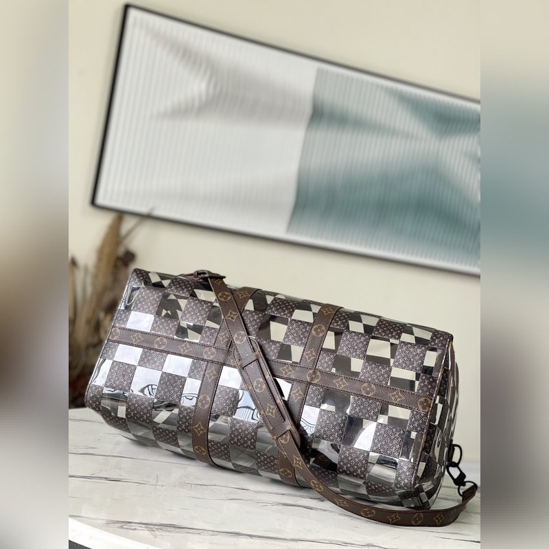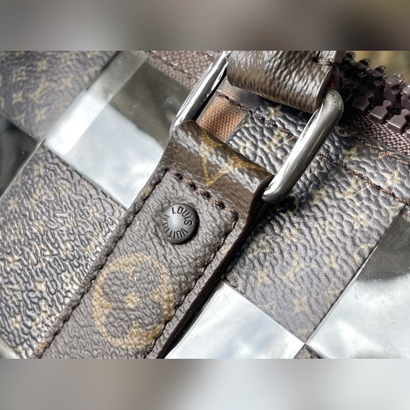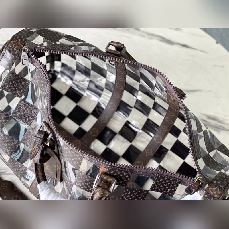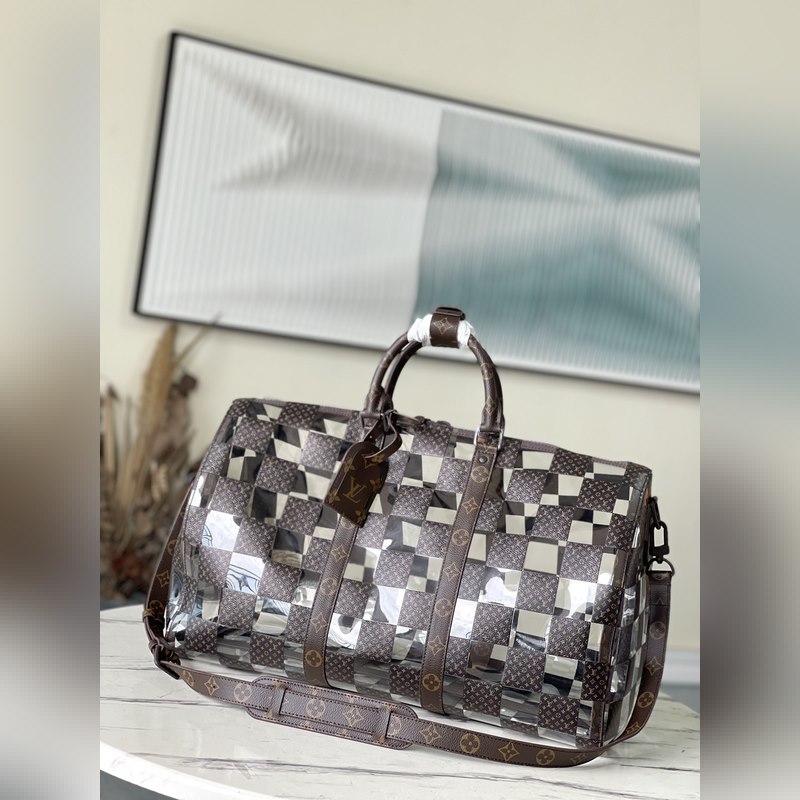 스타일 번호: M20864 2022년 가을/겨울 여행 가방 디자이너 버질 아블로의 창의적인 세계로 빠져들어 보세요. 캔버스와 투명한 폴리염화비닐 체크무늬를 번갈아 가며 전통적인 패턴을 재창조하고 새로운 테마 스타일을 발산합니다. 기능적인 디자인 덕분에 짧은 여행이나 탑승 시에 훌륭한 동반자가 되어 줍니다. 크기: 50 x 29 x 23cm 제품 번호: SG96181750