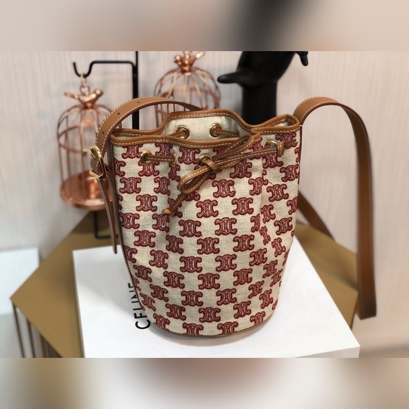 CELINE 개선문 자수 버킷백 자수 원단 드로스트링 백 No.: 191