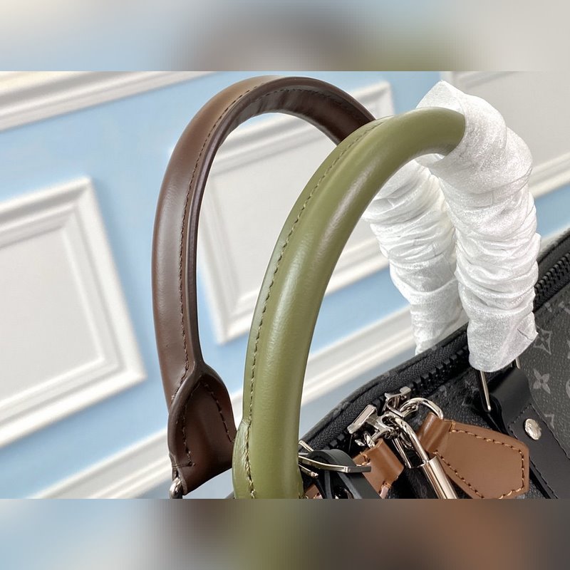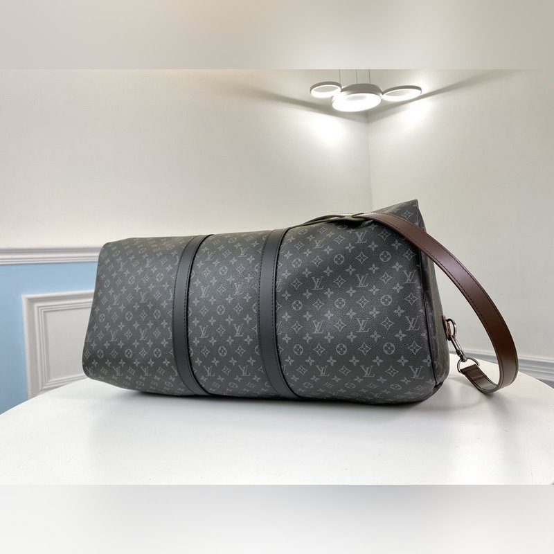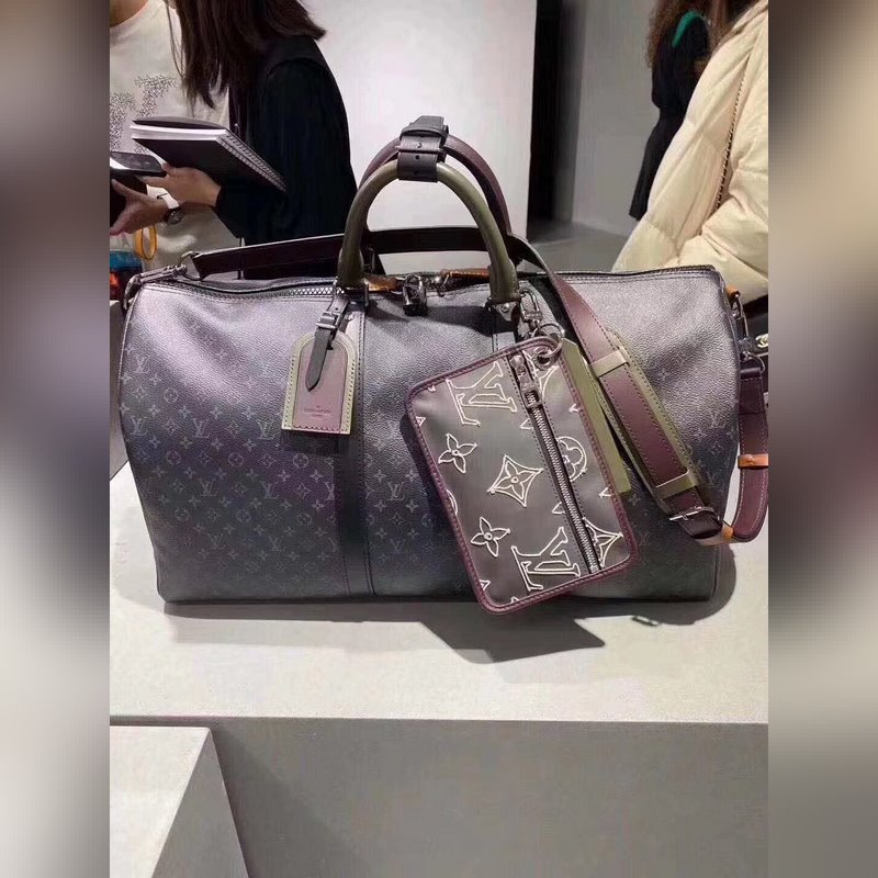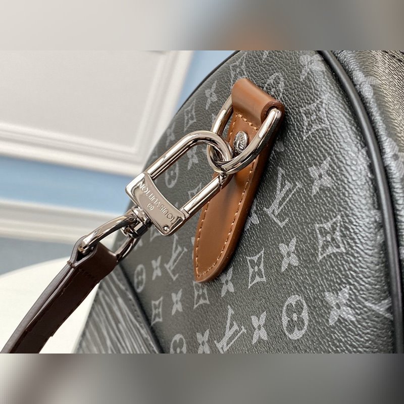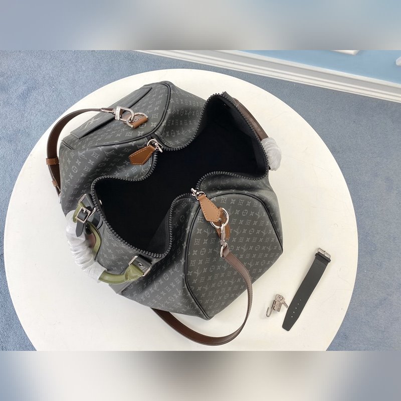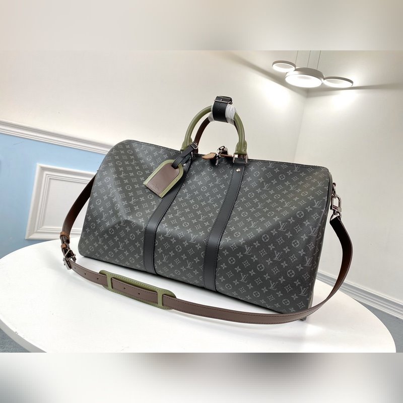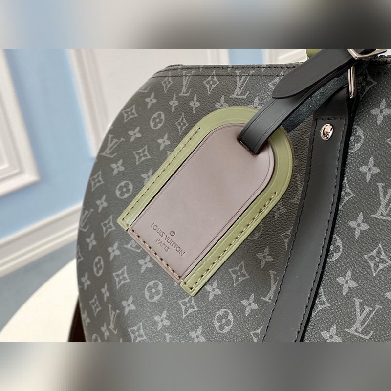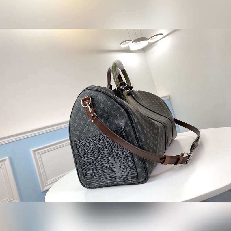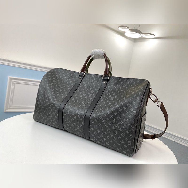 LV 모델 M58669 KEEPALL 여행 가방 검은색 꽃무늬 스크린 인