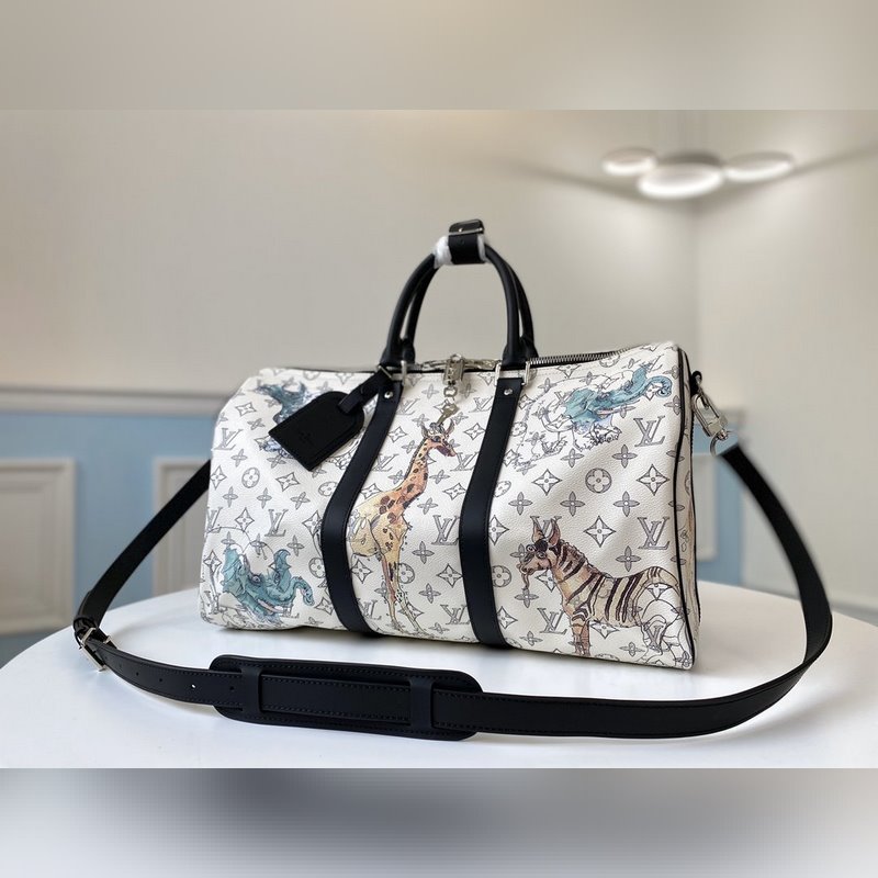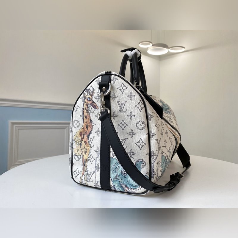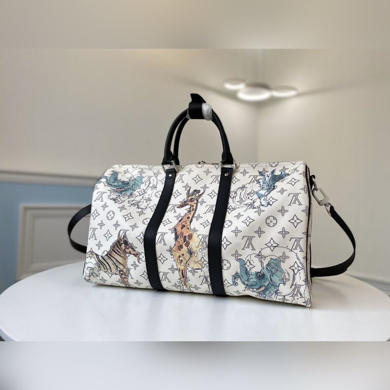 LV 모델 M41449 기린 킵올 45 여행 가방 이 여행 가방은 모노그램 캔버스로 만들어졌으며 유명한 채프먼 형제의 동물 프린트가 특징입니다. 세련된 여행을 위한 완벽한 동반자입니다. 1930년 출시된 이래 Keepall 라인 가방은 세계 여행자들에게 우아한 선택이었습니다. 이 트렌디한 Keepall 45 여행 가방은 모든 필수품을 쉽게 담을 수 있으며 짧은 여행에 적합합니다. 크기: 45 × 27 × 20cm 항목 번호: SG96181350