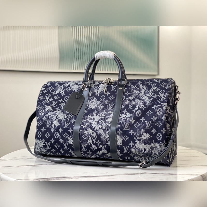 LV 아이템 번호: M57285 Keepall Bandouli?re 50 여행 가방 모노그램 태피스트리 캔버스에 가죽으로 마감한 이 가방은 2021년 봄/여름 프리 컬렉션으로 선보이며 클래식한 모노그램 플라워에 대한 버질 아블로의 아방가르드적인 해석을 보여줍니다. 기내 반입 수하물 크기에 맞는 충분한 공간과 소지품을 안전하게 보관할 수 있는 자물쇠 지퍼가 있습니다. 크기: 50 x 29 x 23cm 아이템 번호: SG96181350