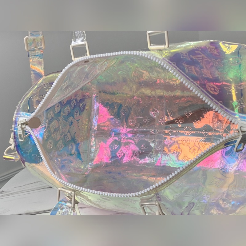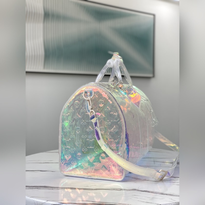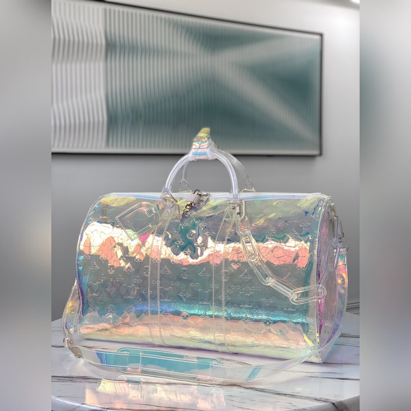 LV 아이템 번호: M53271 L. keepall 50 레이저 각인 여행 가방 19SS 한정판 정말 멋진 한정판 가방! 세부 사항: 반투명 플라스틱 소재는 햇빛 아래에서 더욱 투명하게 보입니다. 중간 정도의 경도 얇지도 않고 무겁지도 않은 무게감 질감이 없습니다. 개인적으로 손잡이 옆에 있는 투명한 체인의 디자인이 마음에 듭니다. 길이가 딱 적당하고 가방의 딱딱한 형태에 마무리 터치를 더해 주는 상단 1/3에 매달려 있어 펑크의 자유로움을 느끼게 해 줍니다. 화려하고 화려한 색상을 연상시킵니다. 크기: 50.0×29.0×23.0cm 아이템 번호: SG96181450