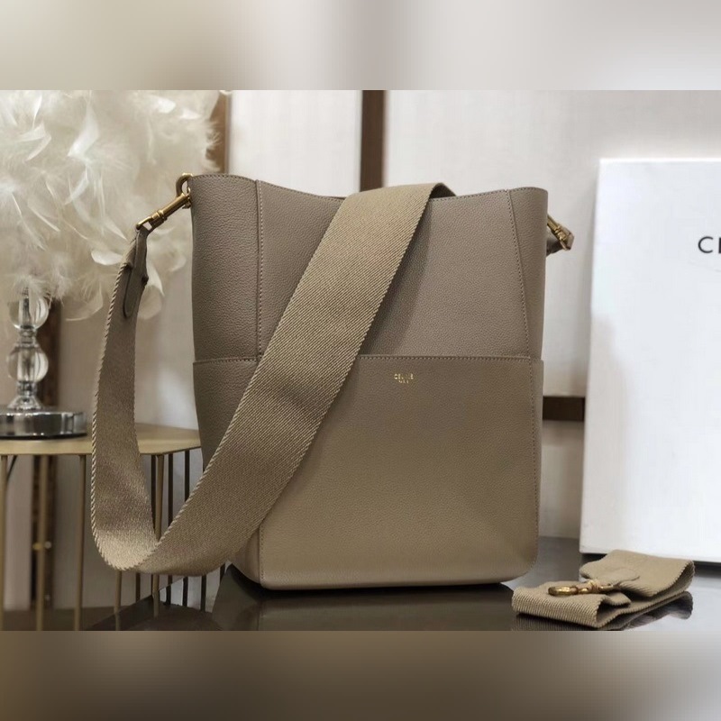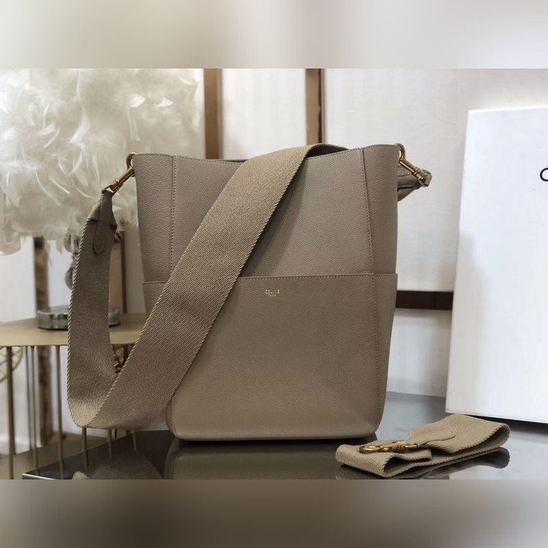 CELINE 리치 그레인 소가죽 버킷백 라지 사이즈 리본으로 더욱 세련된 스타일 사이즈: 23-33-16cm