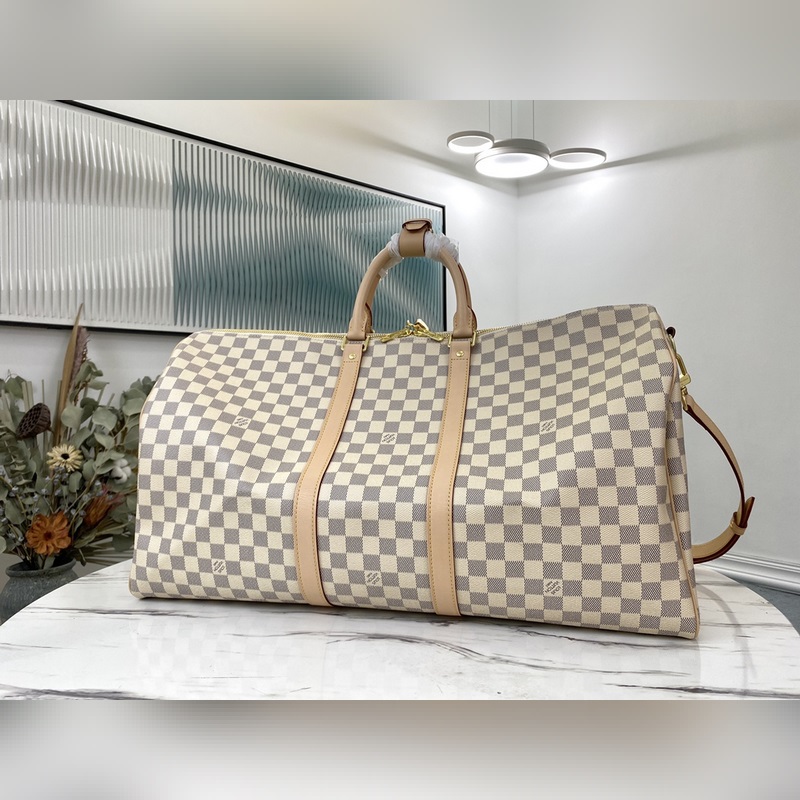 LV 아이템 번호: N41429 흰색 KEEPALL 55 여행용 가방(