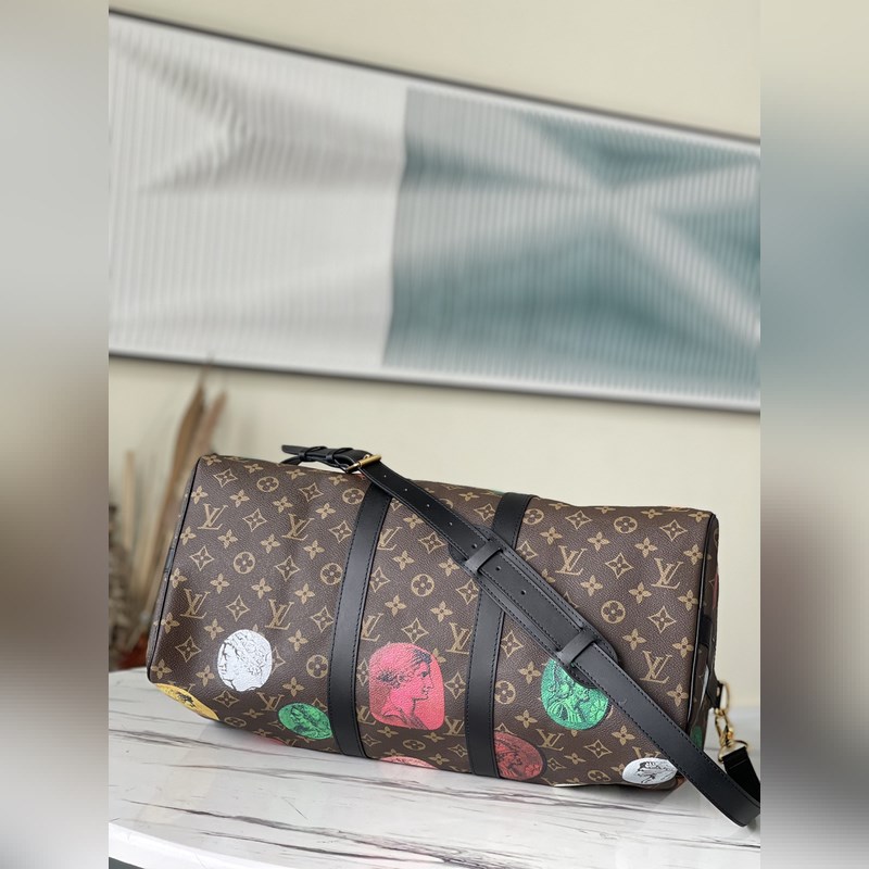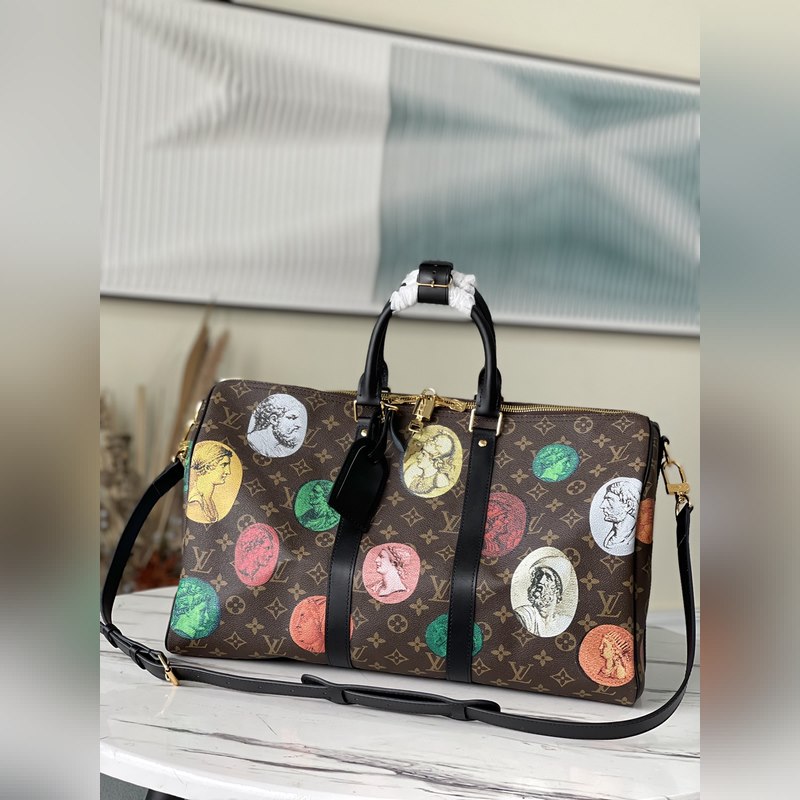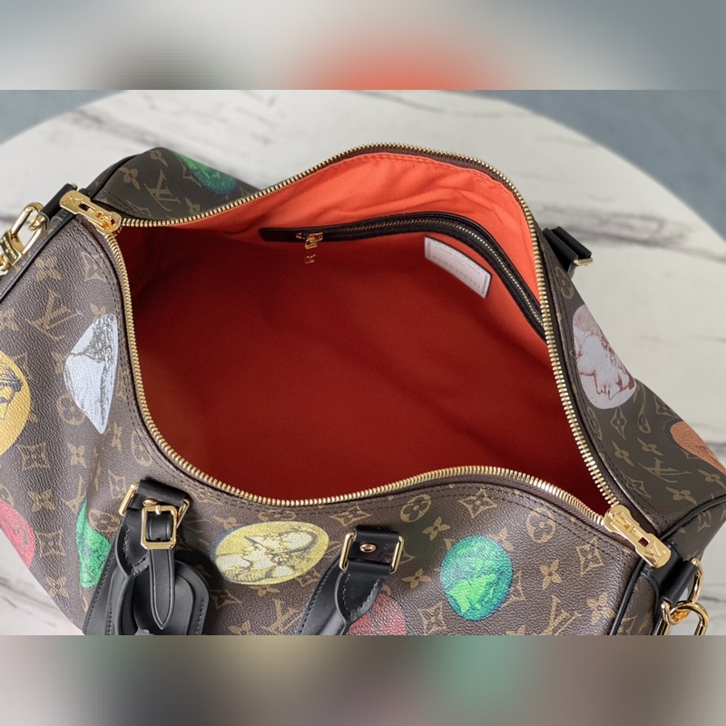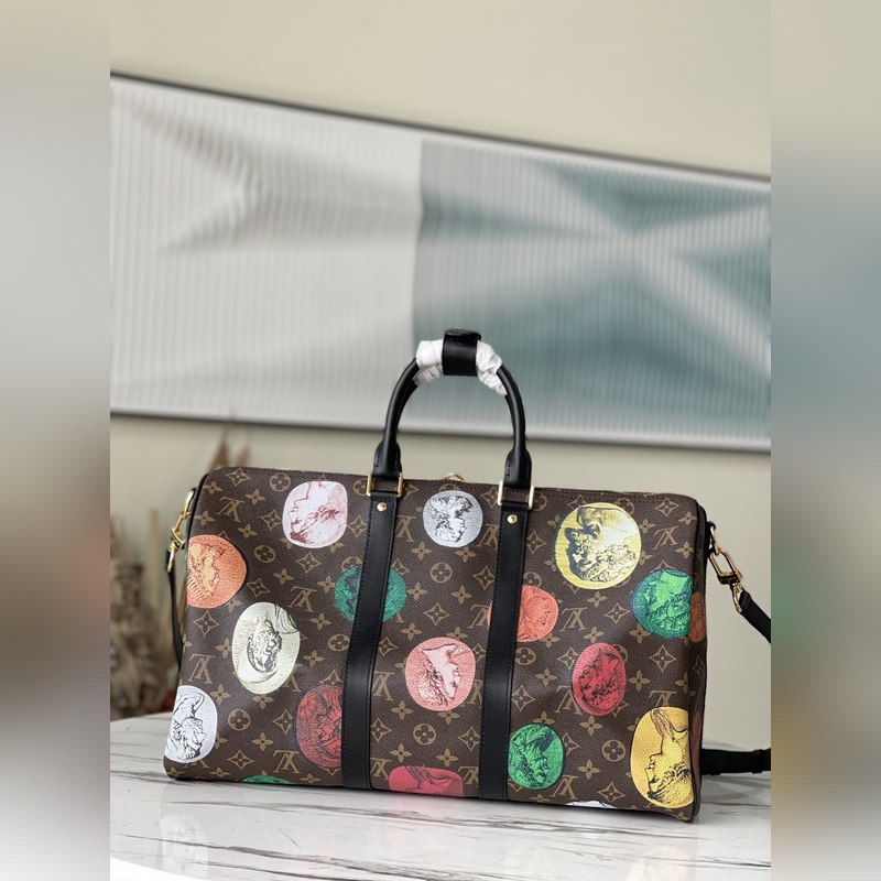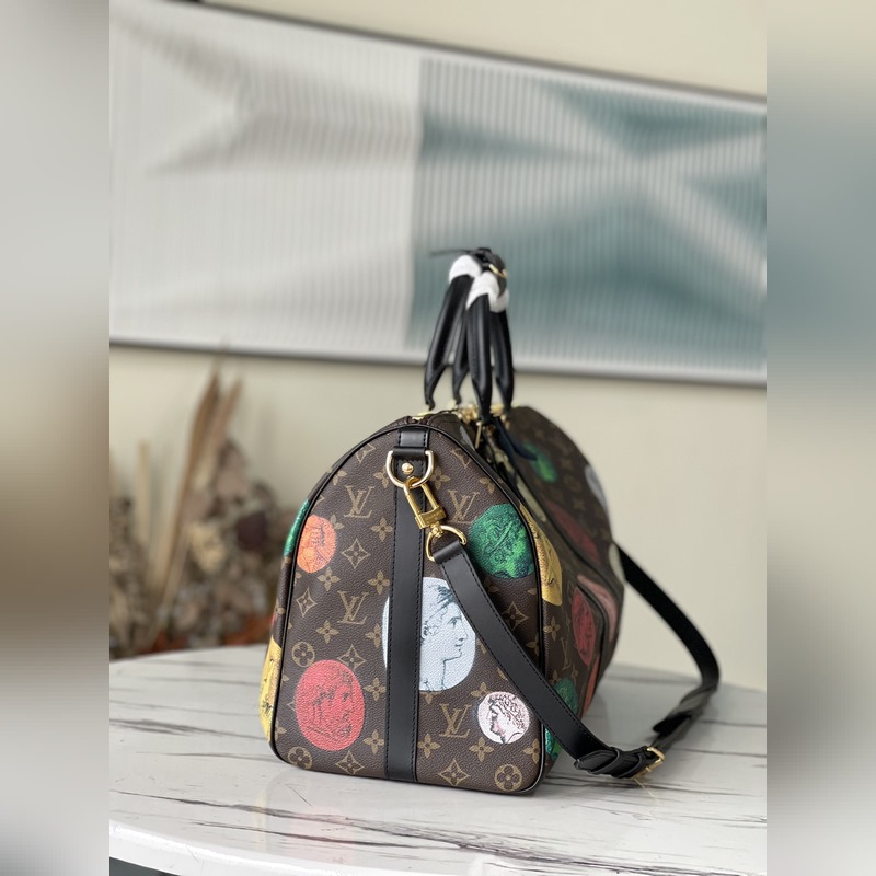 LV 아이템 번호 M59261 45 모노그램 캔버스 소재의 여행 가방 생동감 있는 색상은 이탈리아 예술가 피에로 포르나세티(Piero Fornasetti)의 작품 시리즈에서 영감을 받은 것으로 부조로 떠 있는 듯한 패턴이 특징입니다. 짧은 여행을 위한 충분한 공간이 있습니다. 크기: 45 x 27 x 20cm 품번: SG96181280
