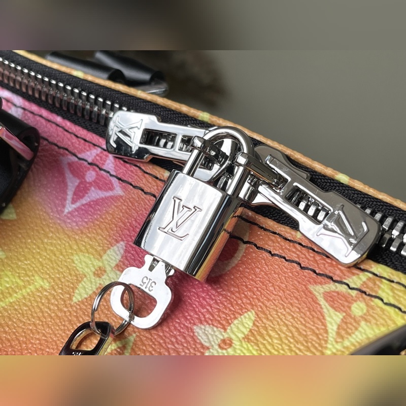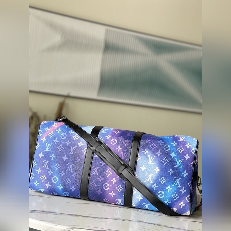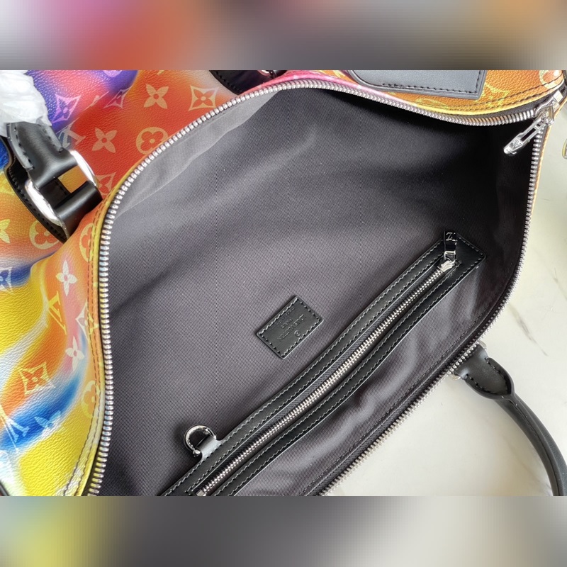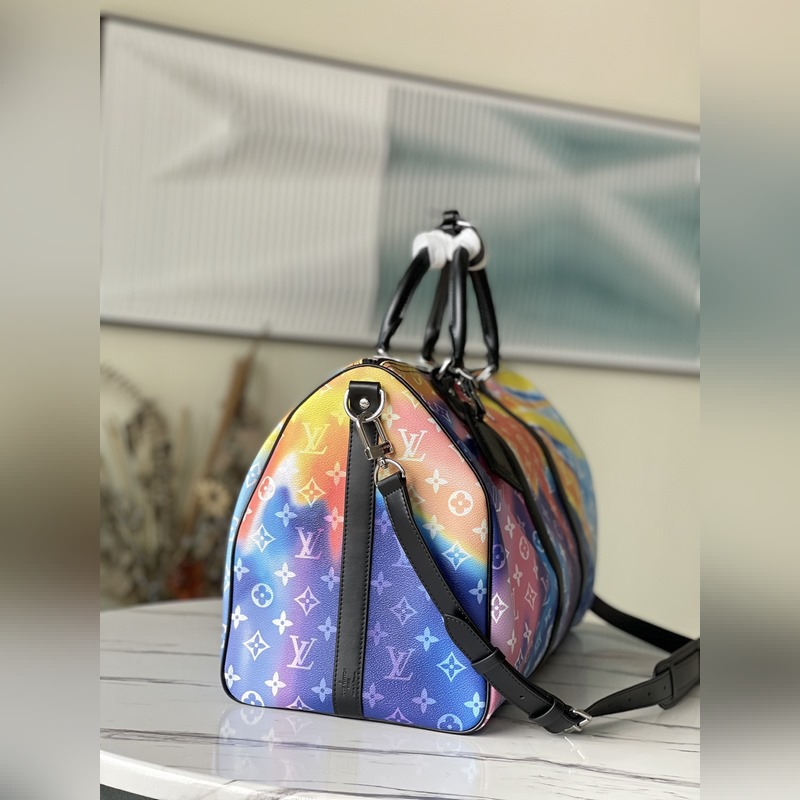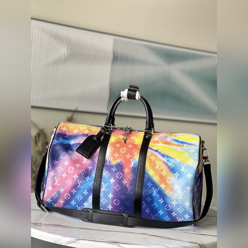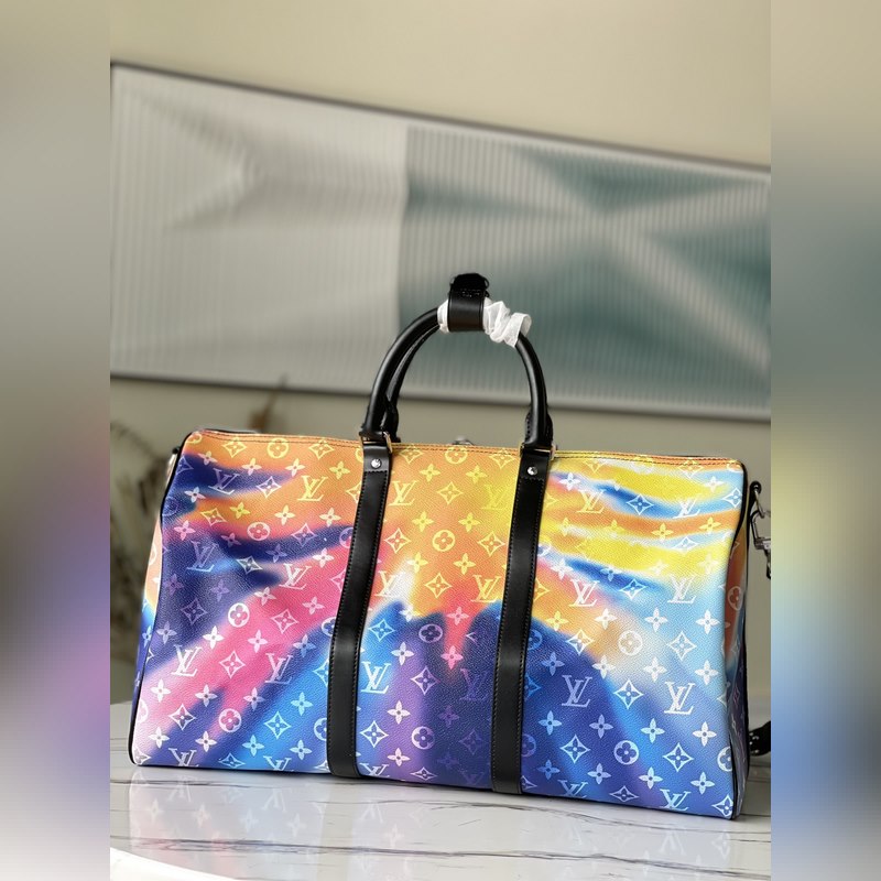 LV 아이템 번호: M45758 모노그램 킵올 50 반둘리에르 소프트 여행 가방 이 Keepall 50 BANDOULI?RE 소프트 트래블 백은 코팅된 캔버스 표면에 버질 아블로가 만들어낸 무지개 같은 판타지를 연상시키는 연한 수채화 물감으로 모노그램 패턴을 특징으로 합니다. 기내 반입 수하물을 위한 충분한 숨겨진 공간이 있어 주말 여행에 이상적인 동반자입니다. 크기: 50 x 29 x 23cm 아이템 번호: SG96181350