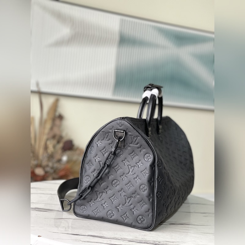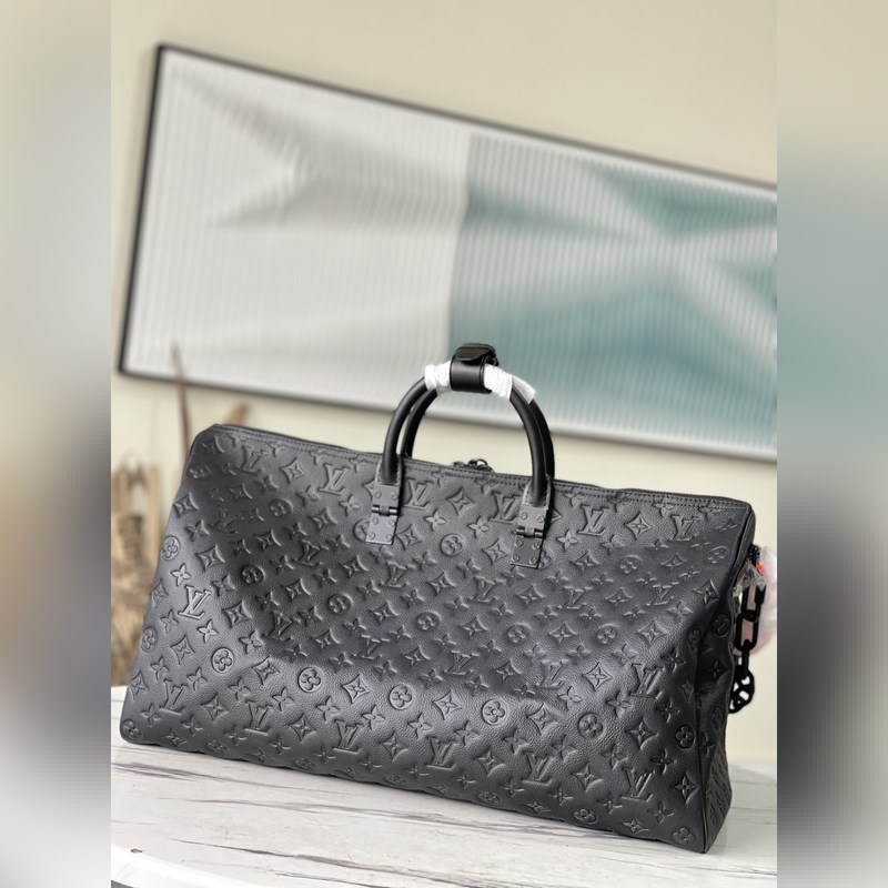 LV 아이템 번호: M44470 엠보싱 처리된 풀 레더 이 Keepall은 브랜드의 전통적인 엠보싱 패턴이 있는 우아한 블랙 색상의 유연한 가죽으로 만들어졌습니다. 무광택 금속 부품과 짧은 여행에 적합한 기내 반입 수하물 크기의 미니멀리스트 디자인을 갖추고 있습니다. 크기: 50 × 29 × 22cm 항목 번호: SG96181480 96181200