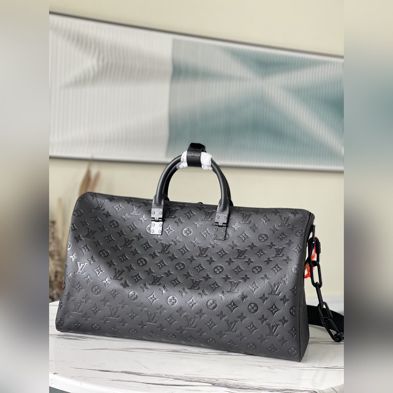 LV 아이템 번호: M44470 양각 처리된 풀 가죽 여행 가방 부드러운 가죽 소재에 브랜드의 전통적인 엠보싱 패턴이 새겨진 우아한 블랙 색상입니다. 무광 금속 부품과 조화를 이루어 미니멀리즘 디자인을 구현했으며 기내 반입 수하물 크기로 짧은 여행에 적합합니다. 크기: 50 × 29 × 22cm 아이템 번호: SG96181700