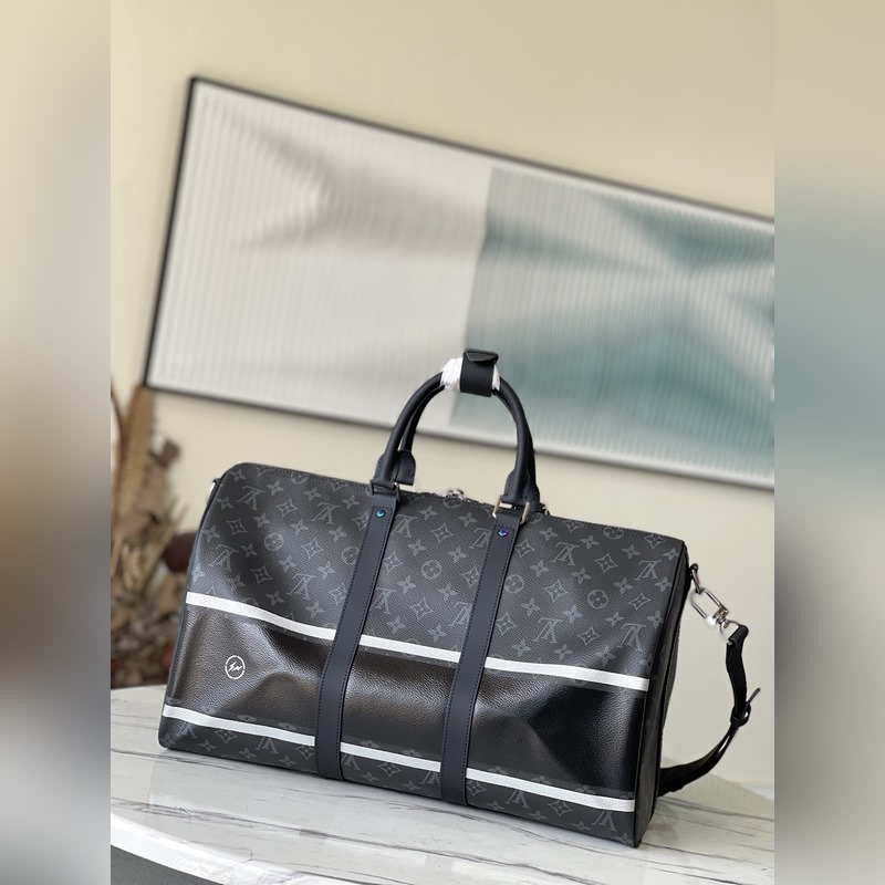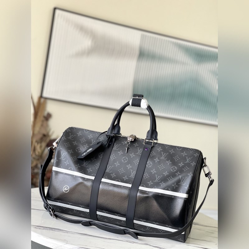 LV 품번: M43413 숄더 스트랩이 달린 KEEPALL 45 여행 가방 일본 디자이너 후지와라 히로시 씨와 공동으로 디자인한 이 Keepall 45 여행 가방은 브랜드의 전통적인 패턴 요소를 담고 있습니다. 크기 45X27X20cm 아이템 번호: SG96181350