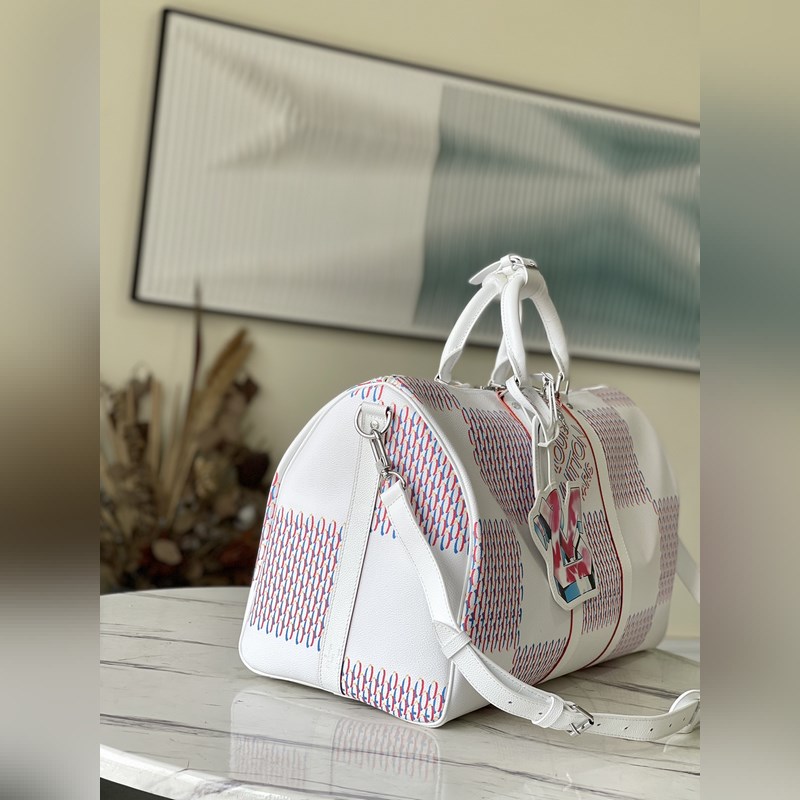 LV 모델 번호: M20563 여행 가방 소가죽으로 만들어져 스트리트 스타일을 자아냅니다. 클래식한 체크무늬가 입체적으로 인쇄되어 있고 큰 라벨이 그래피티 붓놀림으로 변형되어 팬들에게 트렌디한 선택지를 제공합니다. 크기: 50 x 29 x 23cm 아이템 번호: SG96181350