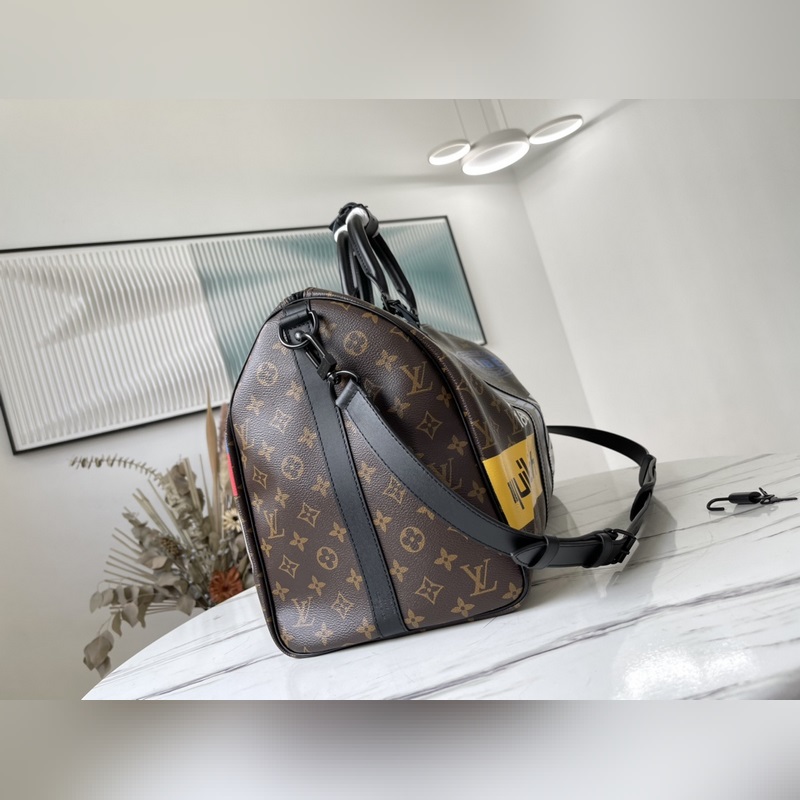 LV 아이템 번호: M44642 KEEPALL 50 여행 가방(어깨끈 포함) 남성복 패션쇼의 핵심 소재 패브릭 핸들과 로고 엠보싱이 있는 탈착식 가죽 어깨 스트랩. 크기: 50.0 x 29.0 x 23.0cm 아이템 번호: SG96181350