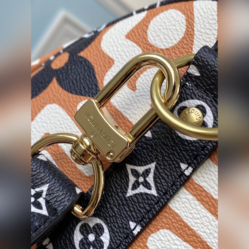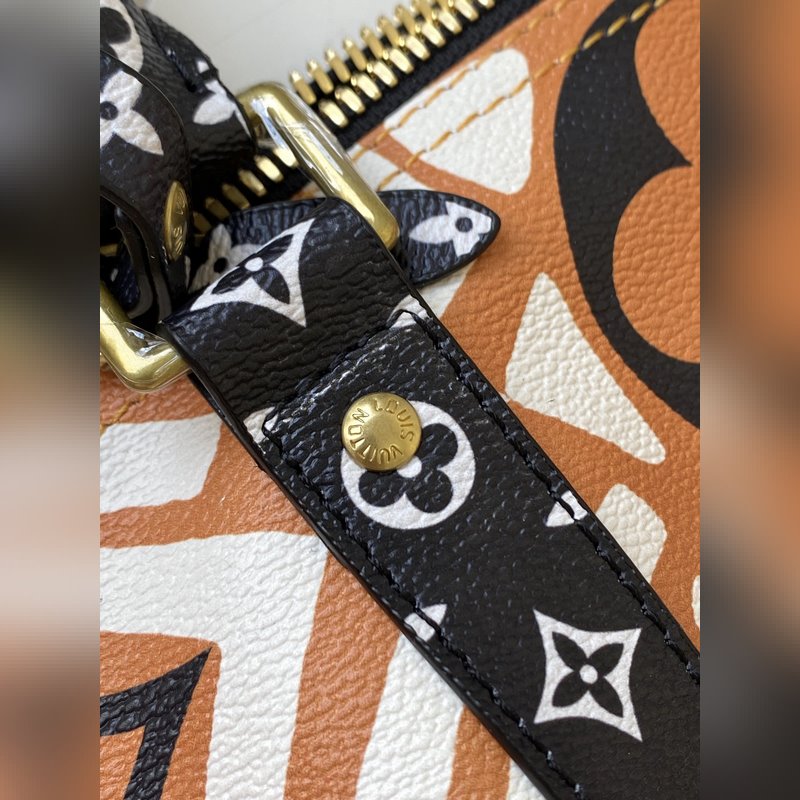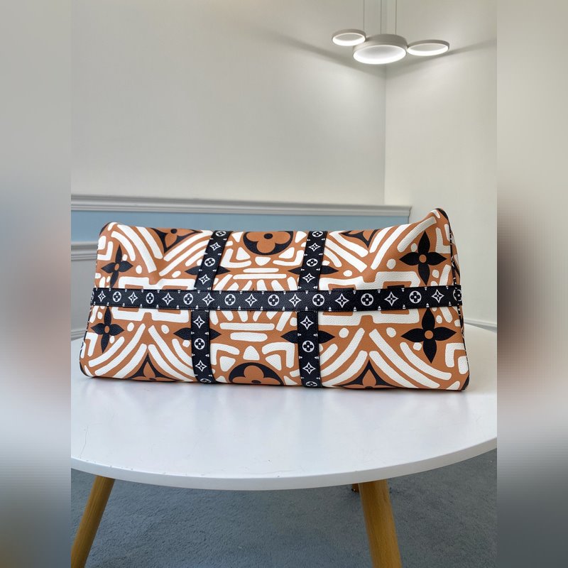 LV 모델 M45473 Keepall Bandouli?re 45 모노그램 자이언트 캔버스에는 대형 모노그램 패턴과 날카로운 기하학적 프린트가 독창적으로 겹쳐져 있어 브랜드의 클래식한 소프트 트래블 백에 새로운 해석을 더해줍니다. 넉넉하면서도 가볍고 유연하기 때문에 짧은 여행에 이상적입니다. 크기: 45.0 x 27.0 x 20.0 cm 항목 번호: SG96181250