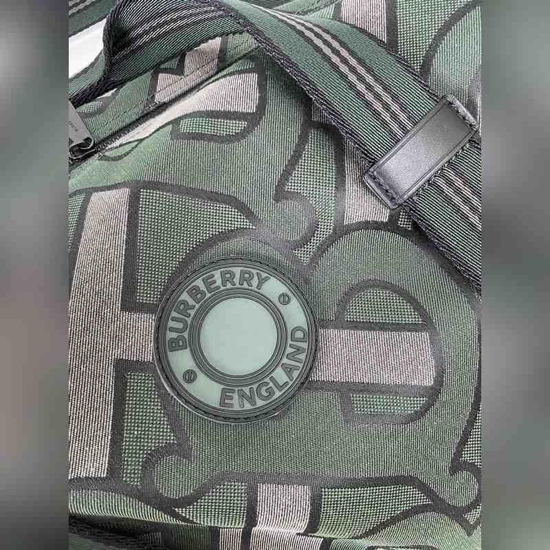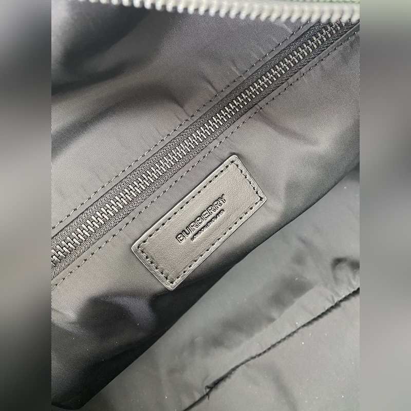 버버리의 최신 나일론 방수 여행 가방 새로운 TB 원단과 송아지 가죽으로 제작되었으며 손에 들고 다니기 편하도록 상단 또는 측면에 손잡이가 달려 있습니다. 어깨에 메는 경우를 위해 길이 조절이 가능한 메시 숄더 스트랩이 함께 제공됩니다. 크기: 50x29cm 품번: YK96181050