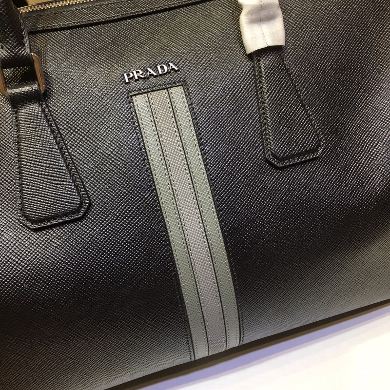 프라다 신상 여행 가방 모델 번호 372R 최고급 대비되는 색상 결이 있는 소가죽으로 만들어졌으며 십자무늬가 있고 여러 개의 수납공간이 있어 장거리 여행에 필수적인 제품입니다. 길이 45.5cm 높이 25cm 폭 17cm 품번: JY96181800