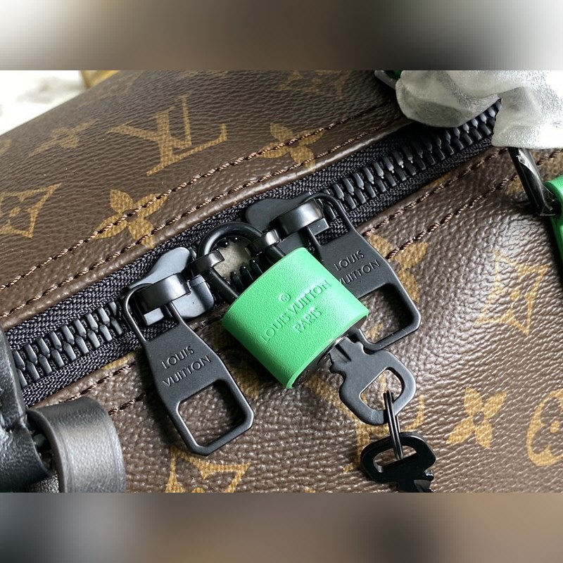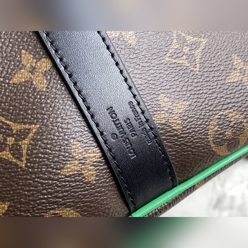 LV Keepall 여행 가방 모델 M46259 올드 그린 50cm 여행 가방 시리즈 이 Keepall 여행 가방은 디자이너 버질 아블로의 시그니처인 생동감 넘치는 색상과 소가죽 디테일이 돋보이는 모노그램 마카사르 캔버스로 만들어졌으며 기능적인 업그레이드와 눈길을 사로잡는 혁신을 결합했습니다. 강화된 측면 스트랩과 버클로 고정된 가죽 이름표는 Keepall 시리즈의 요소를 이어갑니다. 크기: 50 x 29 x 23cm (이 모델은 상자가 포함되어 있지 않습니다)