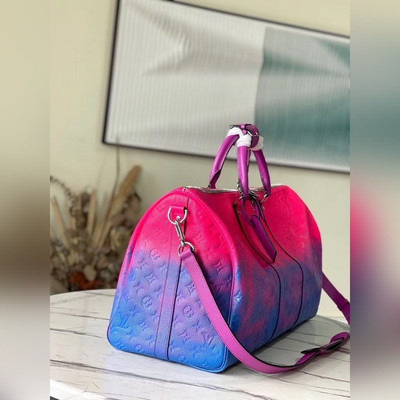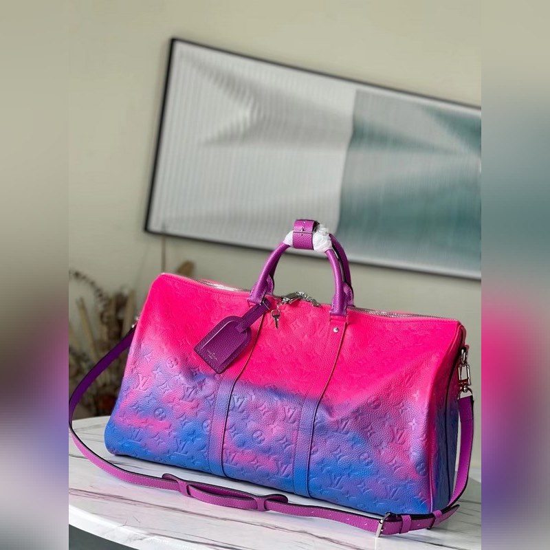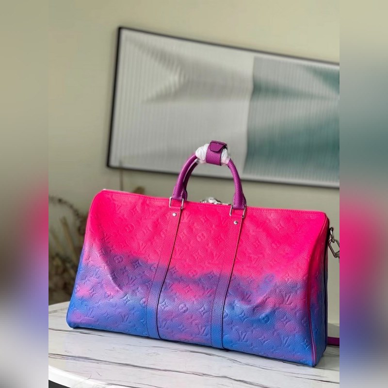 LV Keepall 소프트 여행 가방 토트백 모델 M59713 1930년대에 출시된 Keepall 소프트 트래블 백 시리즈는 버질 아블로가 디자인한 복잡한 디자인으로 변모하여 생동감 넘치는 색상과 에너지로 가득합니다. 타우리옹 일루젼 가죽의 형광색조는 클래식한 모노그램 패턴에 새로운 느낌을 더해줍니다. 크기: 50 x 29 x 23cm