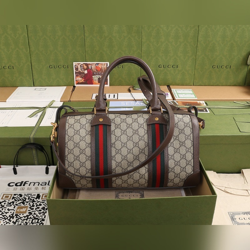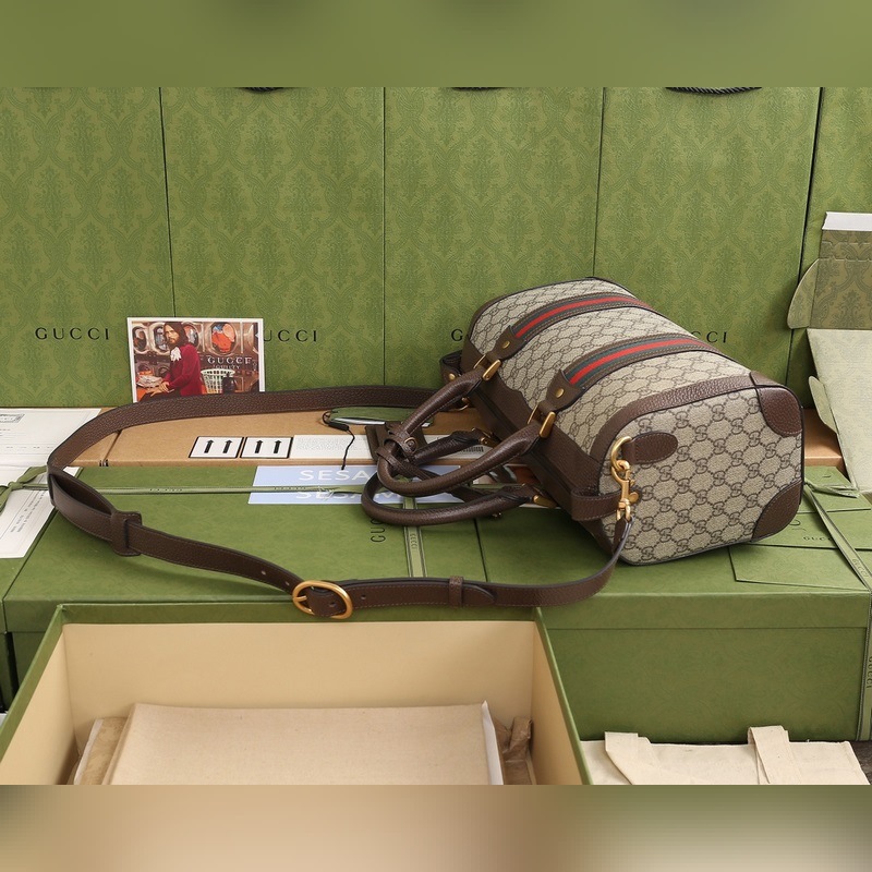 GUCCI G.G 웨빙 소형 여행 가방 모델 번호: 645017 브라운 GG 직조 리본 소형 여행 가방 수입 가죽 원자재 하드웨어 모든 수입 실 이탈리아 공장에서 수입한 가죽 시리즈 이 새로운 시리즈는 사계절에 맞추어 제작되었습니다. 눈길을 사로잡는 색상! 이중 G 글자가 다양한 매력을 만들어 냅니다. 그리고 자유롭게 믹스 앤 매치할 수 있는 디자인 컨셉! 정말 매력적이라고 말해야겠어요 크기: 36cm x 20cm x 14.5cm