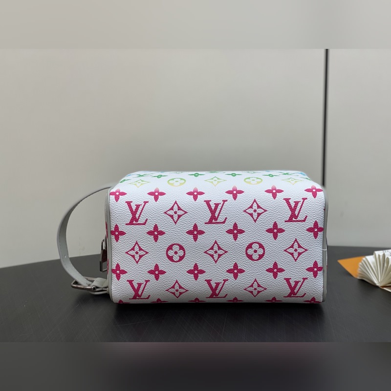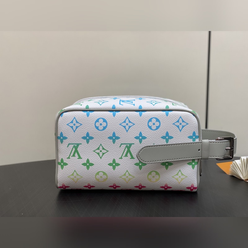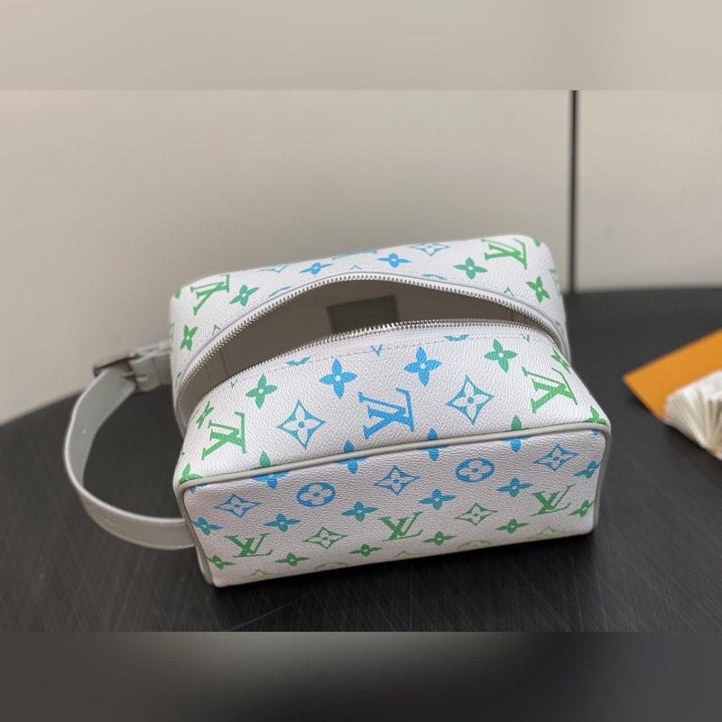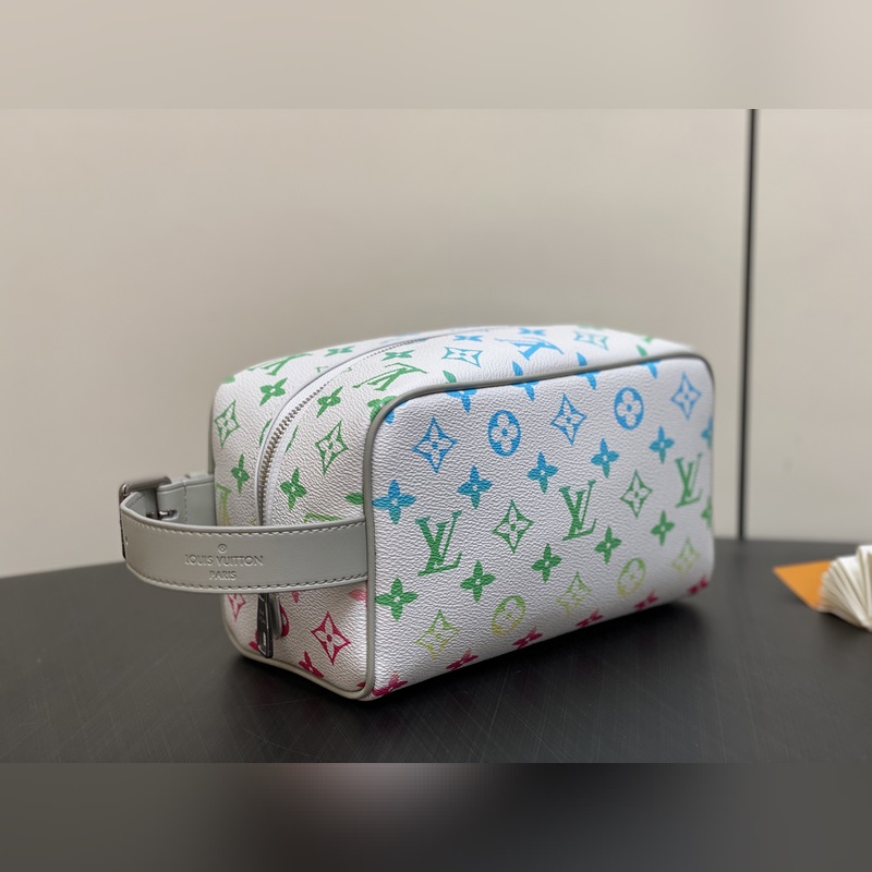 【대만산】 M14034 화이트 그라데이션 화장품 가방 및 세면도구 가방 이 제품 Locker Dopp Kit 세면 가방은 Monogram 캔버스 소재를 사용해 현대적인 트렌드와 우아한 스타일을 조화시켰습니다. 컴팩트한 디자인에 충분한 수납 공간을 갖추어 일상 필수품을 편리하게 보관할 수 있습니다. 세척 가능한 내장재와 조절 가능한 측면 손잡이가 결합되어 편리한 휴대성을 제공합니다. 크기: 23×13×12cm.