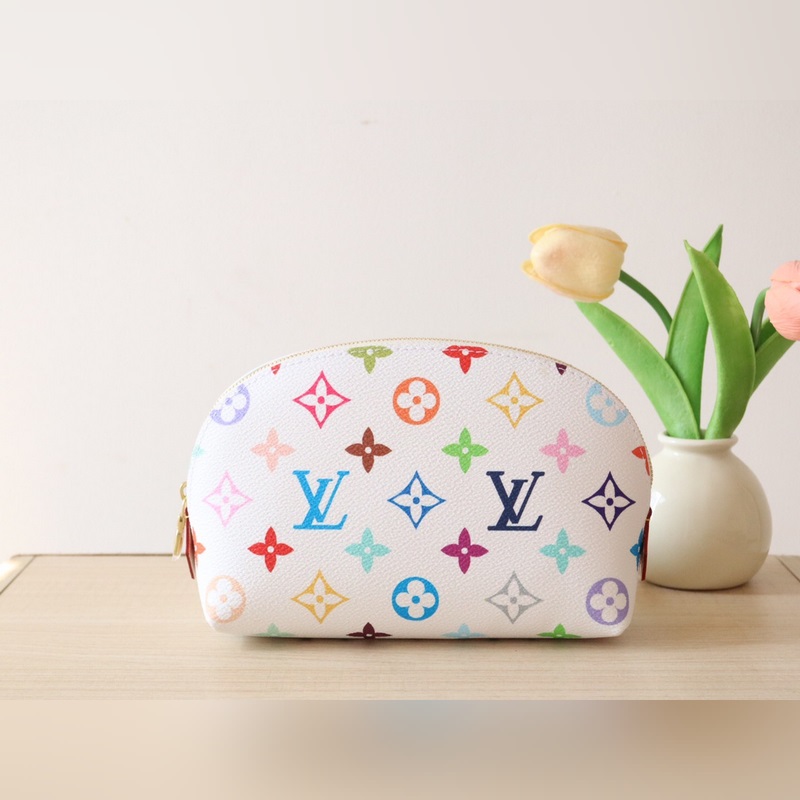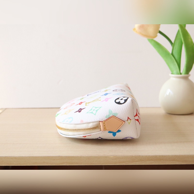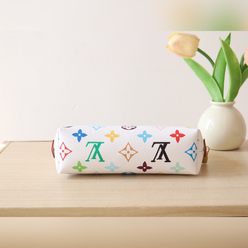 M13744 삼채 화장품 가방 이 제품의 모노그램 프린트는 33가지 화려한 색상으로 2025년 무라카미 타쿠미와 루이 비통의 콜라보레이션으로 출시된 백삼채와 흑삼채를 재해석했습니다. 12개로 구성된 이 제품은 전 세계적으로 인기를 끌며 유명 인사들에게 사랑받고 있습니다. 활기차고 순수한 어린이 같은 디자인이 특징입니다. 크기: 19x12x6cm