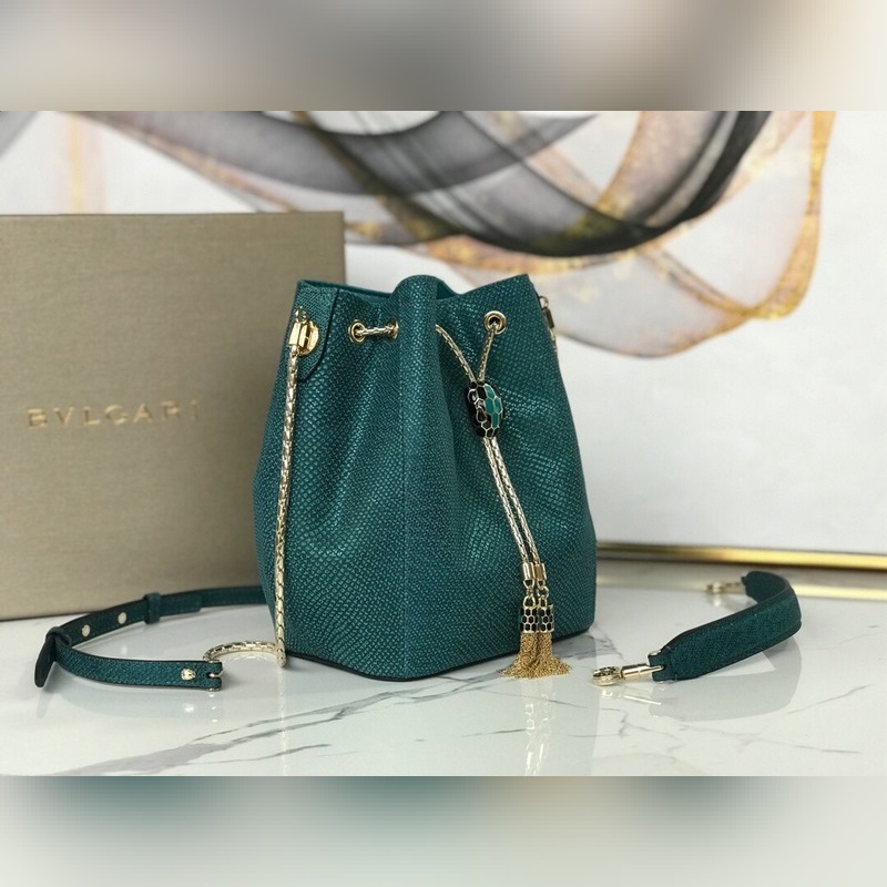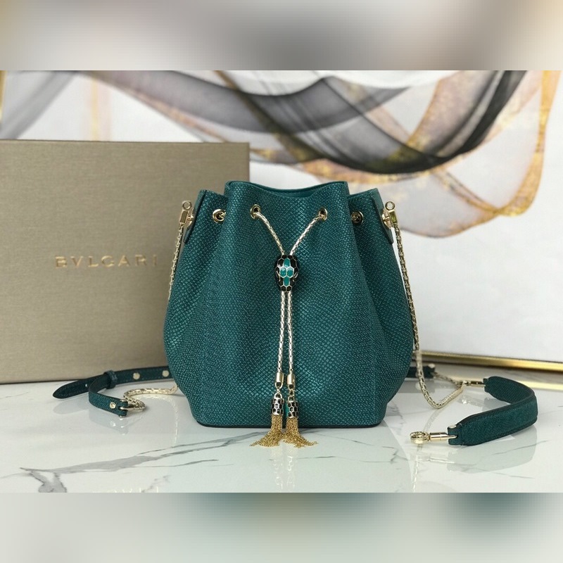 불가리 버킷백 스네이크 스킨 모델 B287614 수입된 뱀 가죽 안감