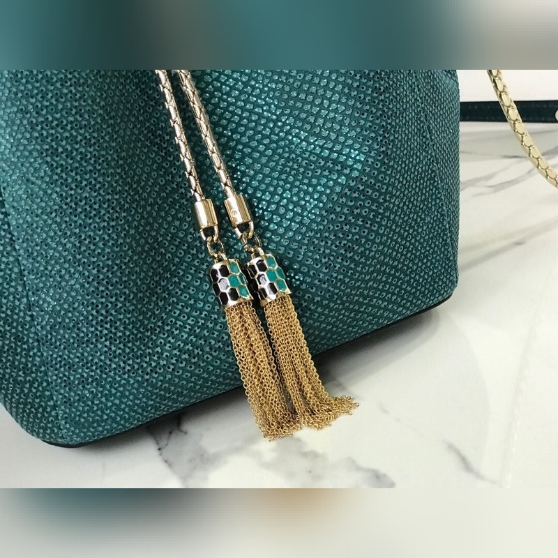 불가리 버킷백 스네이크 스킨 모델 B287614 수입된 뱀 가죽 안감 양가죽 이 모델은 금속 하드웨어 상단의 가방 입구를 통과하는 황동 체인을 가지고 있습니다. 뱀 머리 하드웨어는 바닥에 자물쇠가 있어 자유롭게 조이고 풀 수 있습니다. 많은 유럽과 미국의 유명 브랜드가 거리 스냅에 꼭 사용하는 제품입니다. 크기: 16*20*10.5cm