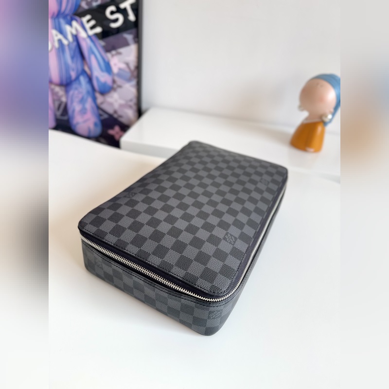 해외 오리지널 싱글 N43690 블랙 그리드 독점 리얼 샷! 이 대형 패킹 큐브 보관 가방은 루이 비통의 새로운 보관 예술 작품으로 모노그램 캔버스에 소가죽 트림이 특징입니다. 이 가방은 여행 가방 안에 물건을 정리하거나 목적지에 도착한 후 소지품을 운반하는 데 사용할 수 있습니다. 크기: 34×22×8cm
