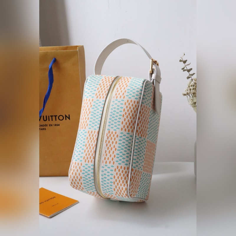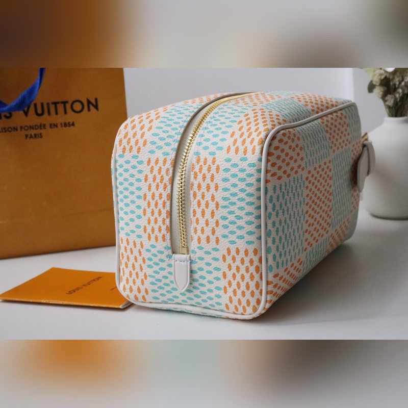 N40747 화장품 가방 조절 가능한 측면 손잡이와 콤팩트하면서도 넉넉한 내부 공간이 특징인 보관함 세트입니다. 이 화장품 가방의 디자인은 기능적이며 안감은 물걸레질할 수 있습니다. 또한 세련된 도시형 소형 가방으로도 활용할 수 있습니다. 메종을 상징하는 체크무늬는 Farrell Williams가 Damier Heritage 캔버스에 레트로한 세련된 분위기를 더해 적용했습니다. 23 x 13 x 12cm